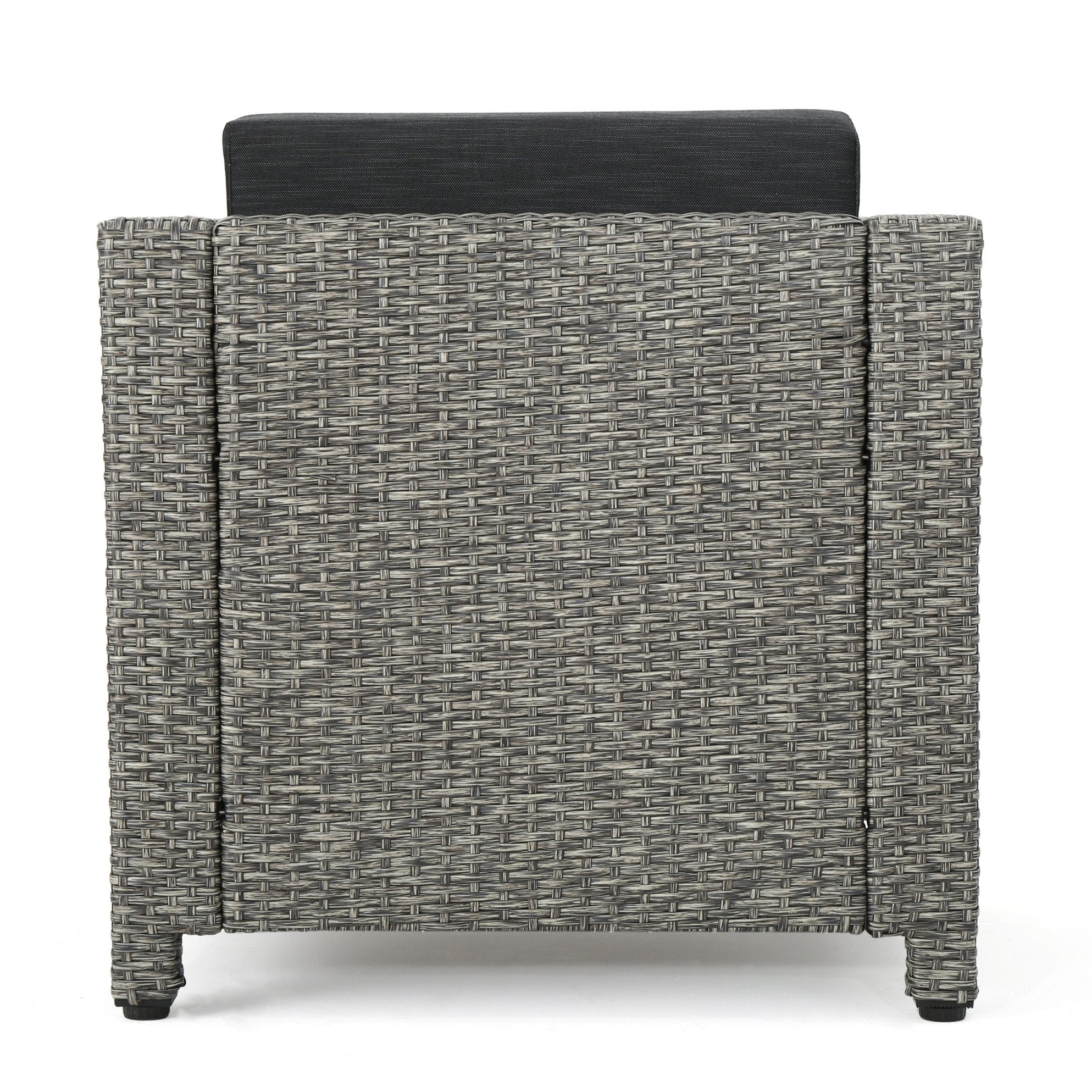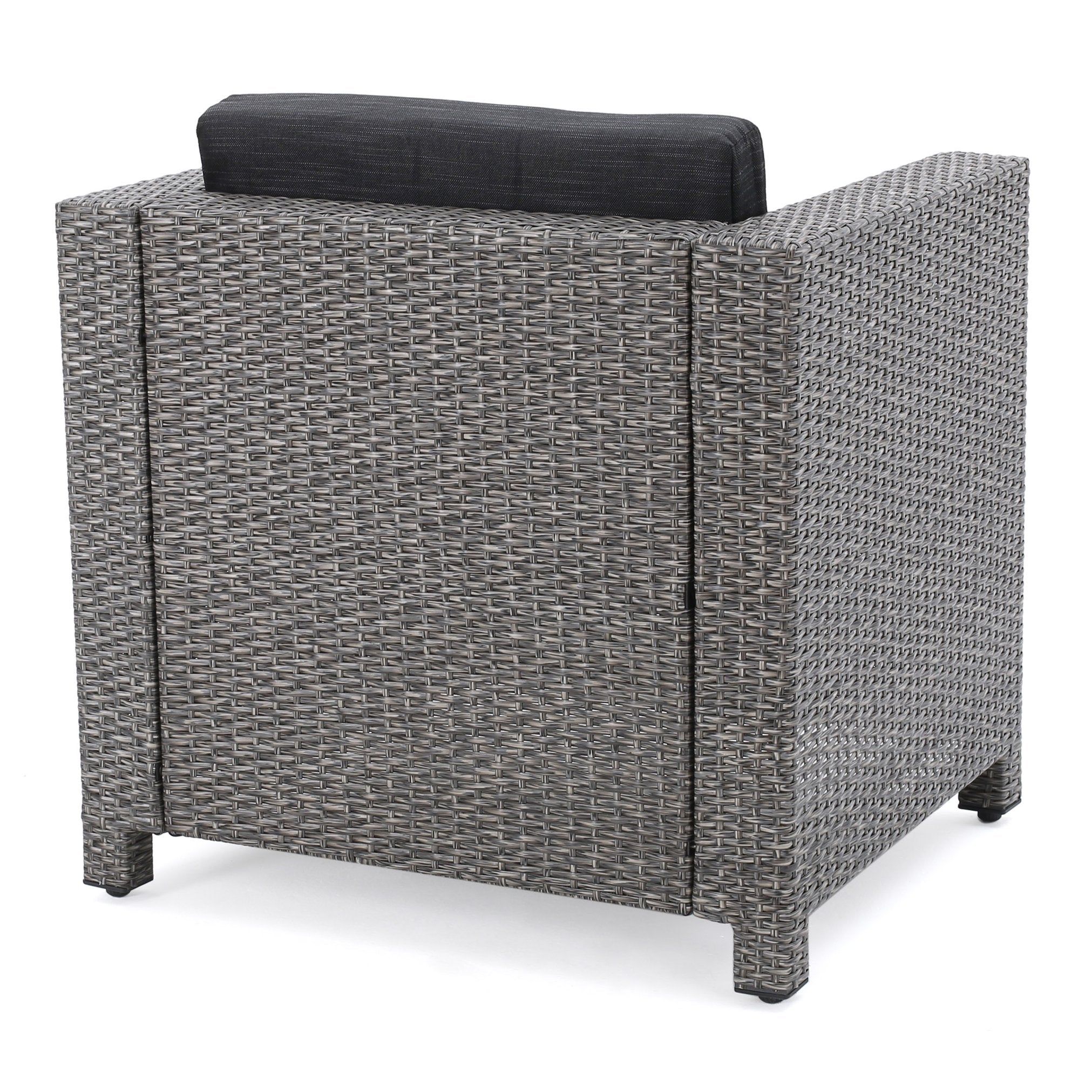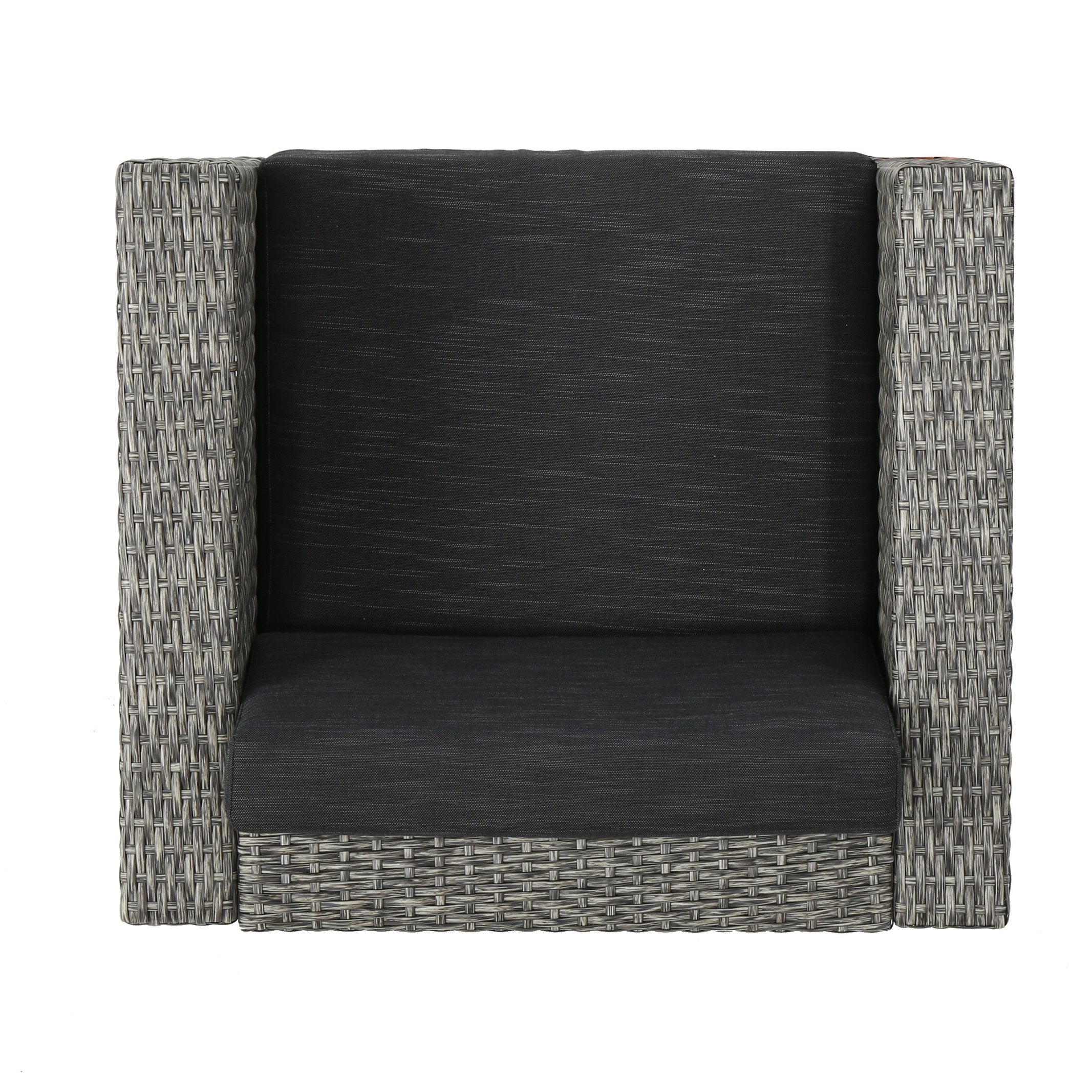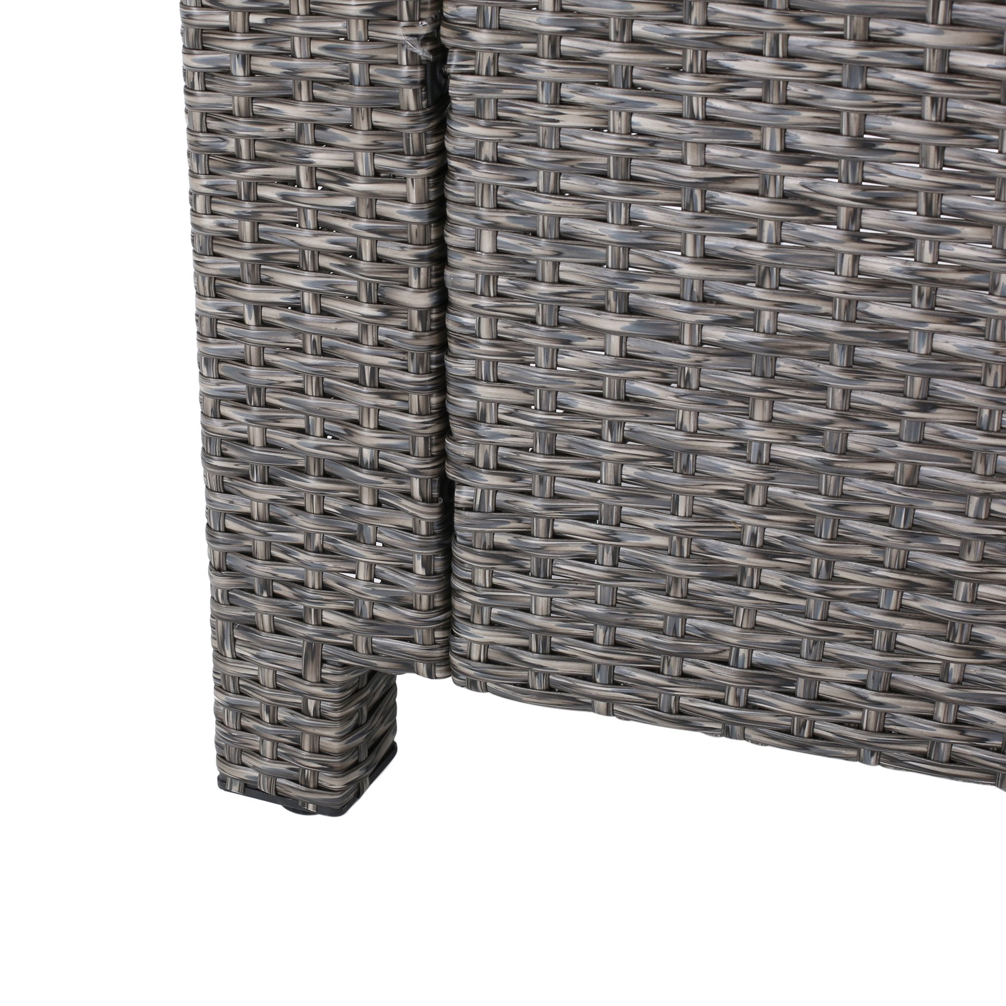 - Materials: Durable faux rattan (wicker) frame with 100% polyester cushion covers