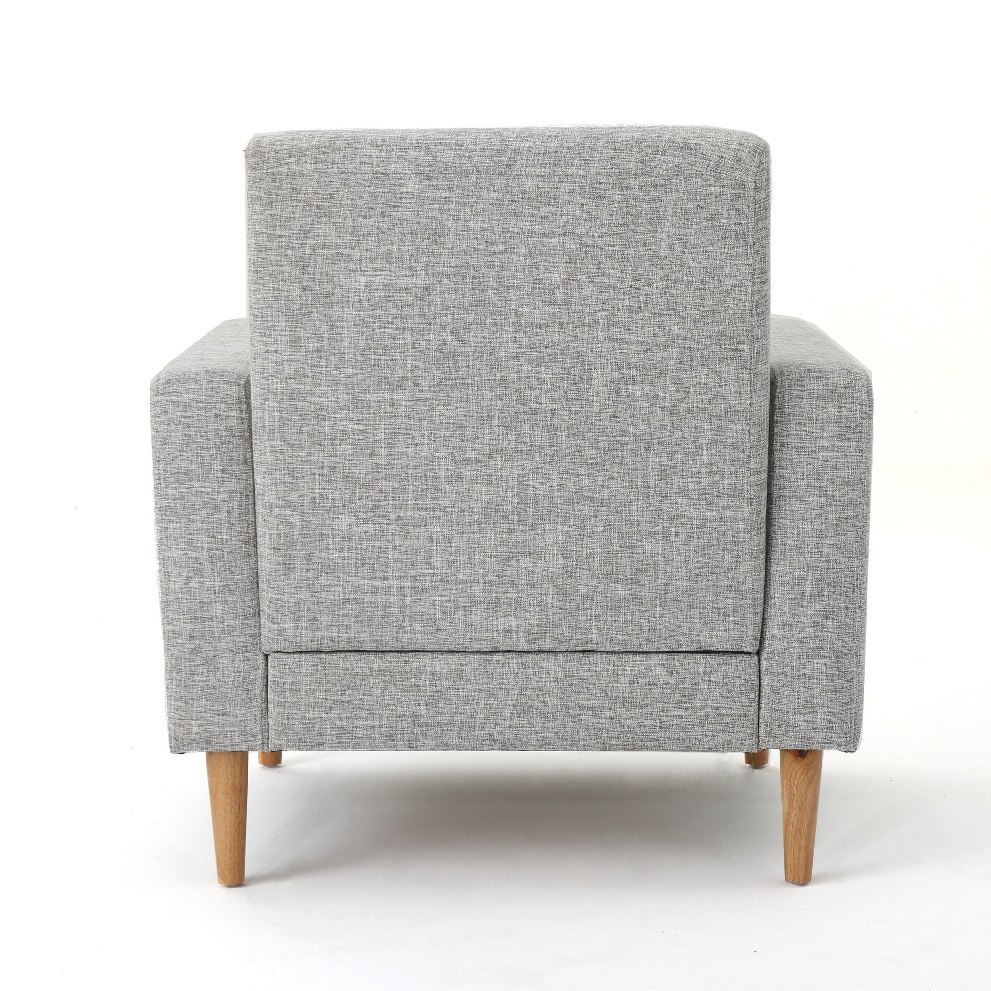 Add a touch of mid-century elegance to your living space with a thoughtfully designed club chair that combines clean lines, cozy upholstery, and durable construction. Its light grey fabric offers a versatile neutral palette that complements modern and classic interiors alike, while the supportive seat and tapered wood legs deliver both comfort and timeless style.