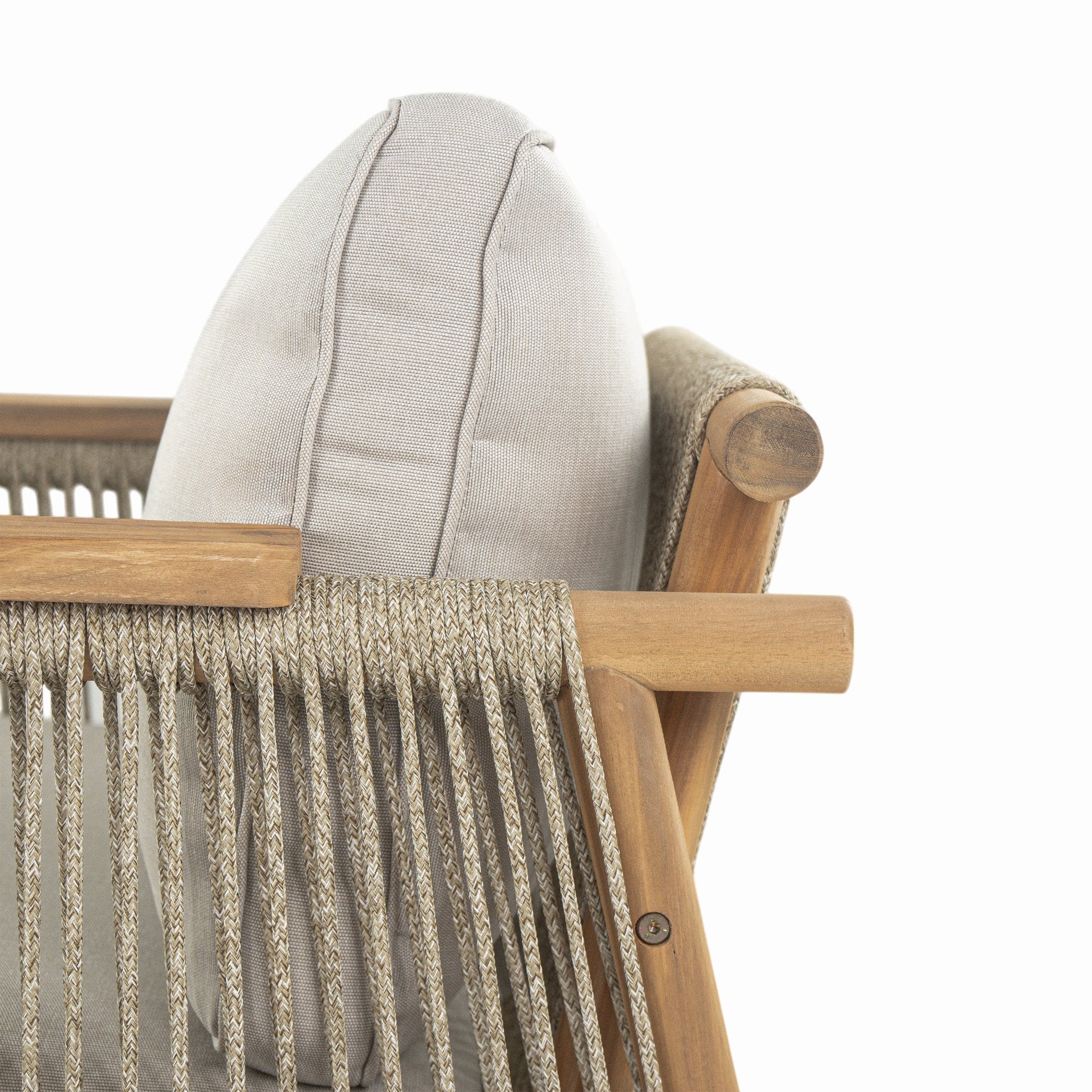 Add relaxed, contemporary style to your outdoor living area with this expertly crafted club chair. Combining warm acacia wood, airy rope detailing, and easy-care water-resistant cushions, it offers durable comfort and a distinctive look that complements patios, decks, and poolside lounges.