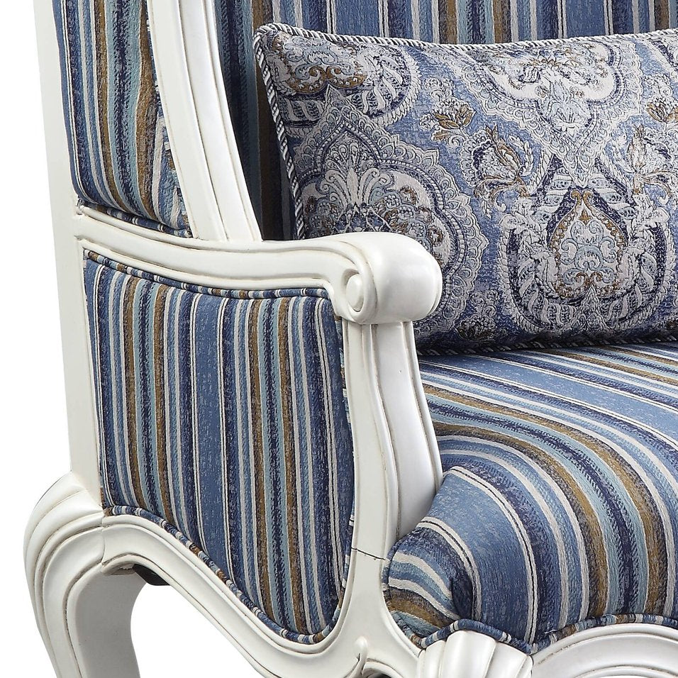 - Finish & color: Multi-color fabric upholstery with white finish on trim/legs
