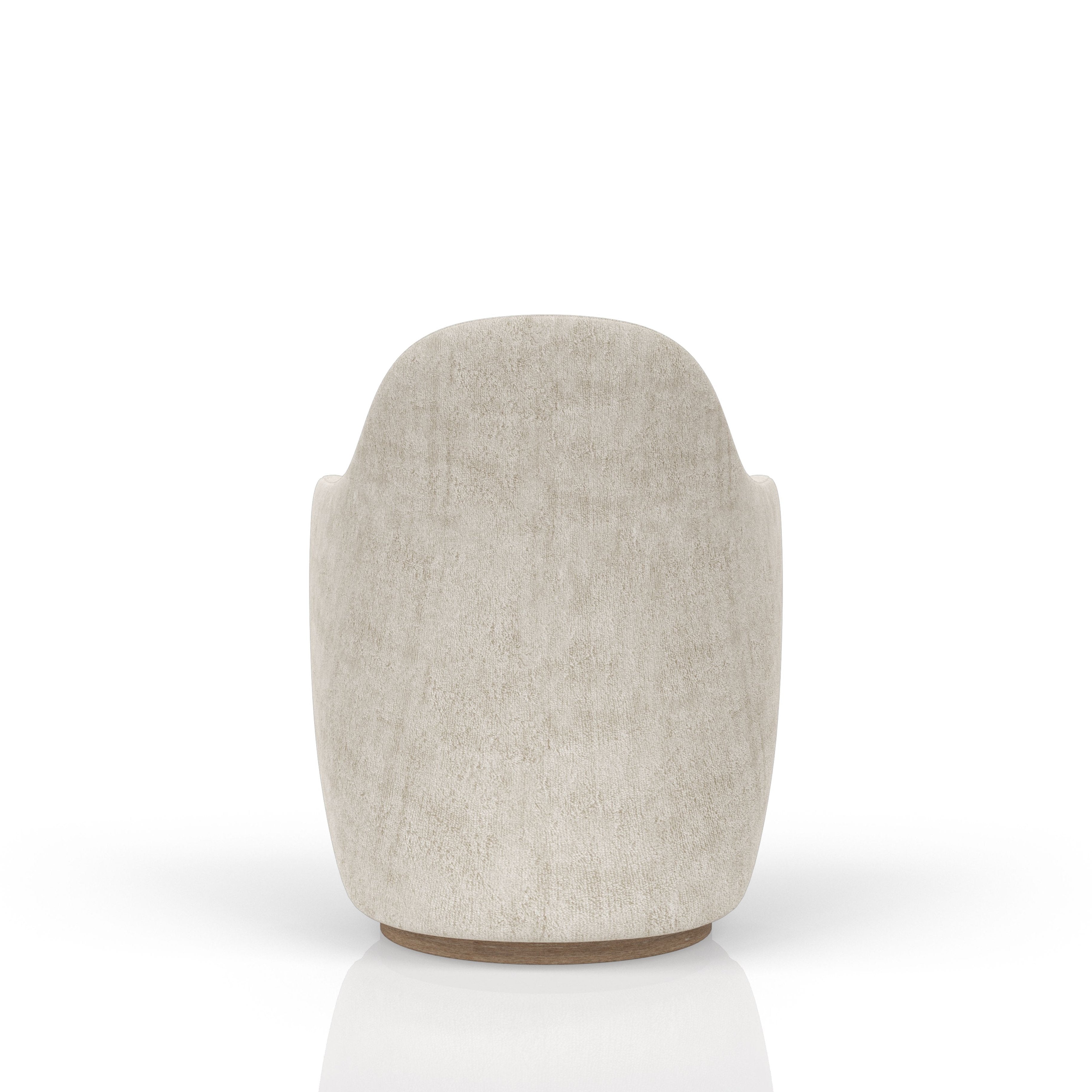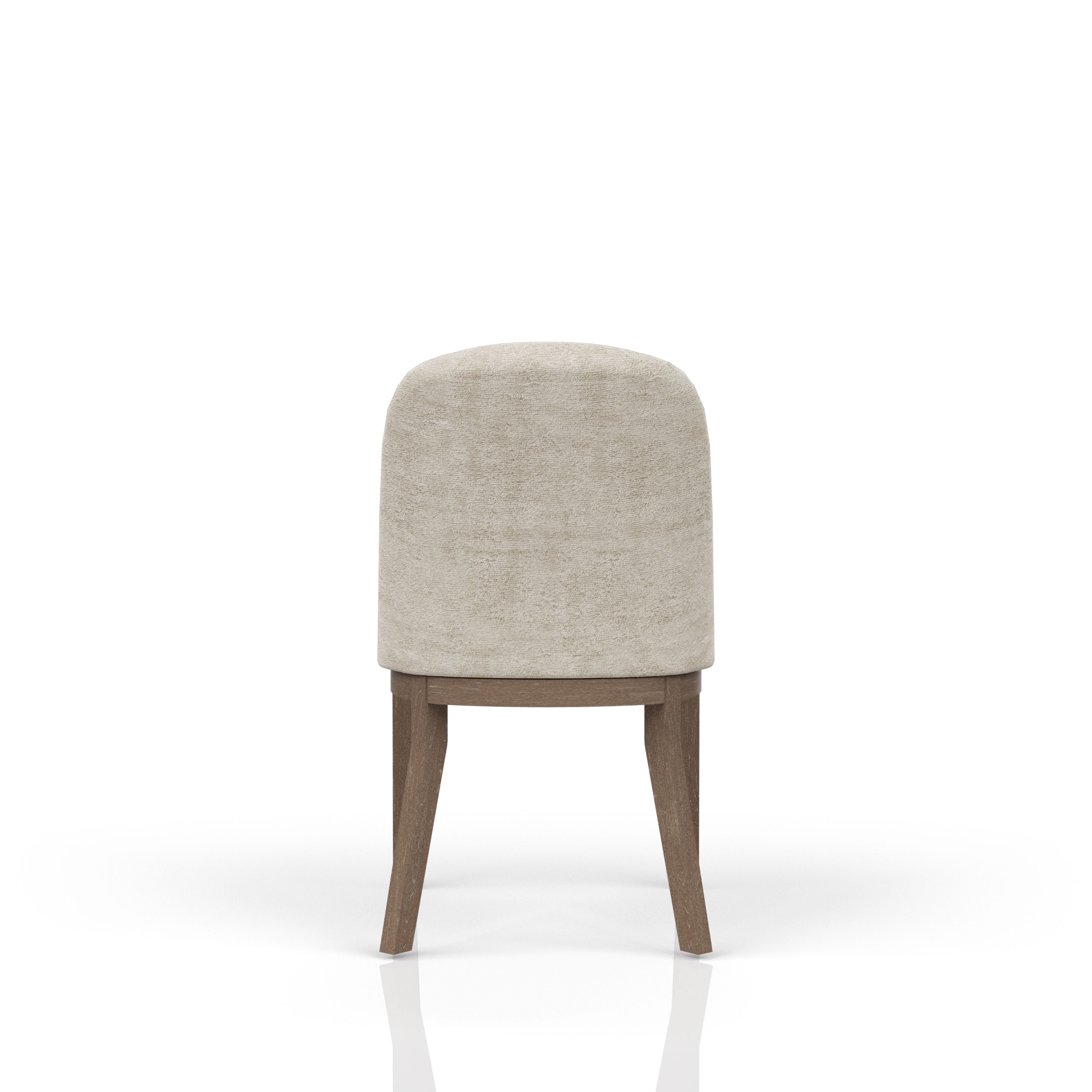 - Cocoa-Stained Wood Base: Rich, warm finish that grounds the chair and complements light upholstery