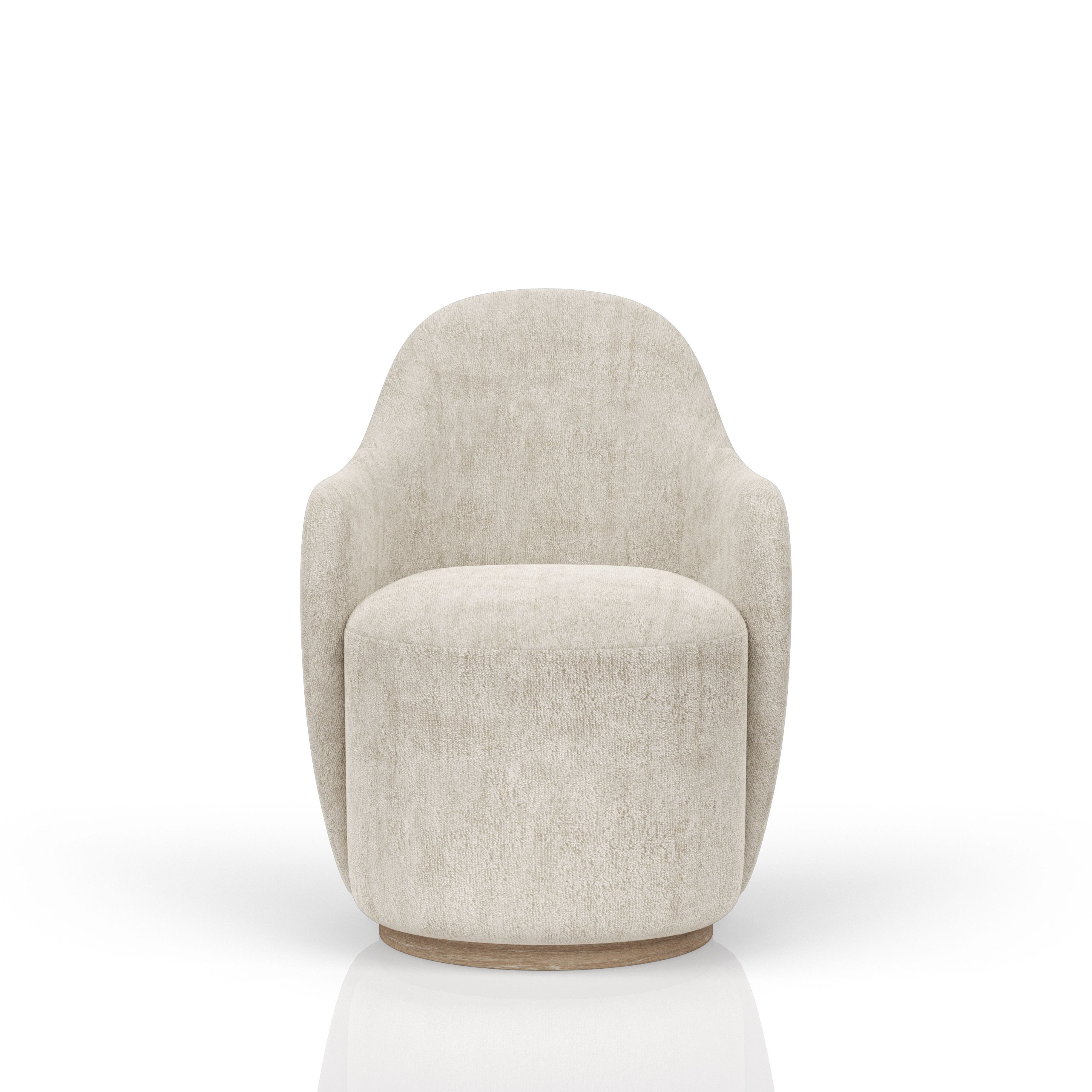 Bring warmth and modern comfort to your living space with this Cocoa and Ivory Swivel Barrel Chair. Its clean ivory upholstery and cocoa-stained wood base create a versatile, transitional look while the 360° swivel function adds effortless mobility — perfect for conversation areas, reading nooks, or a stylish accent in a bedroom or office.