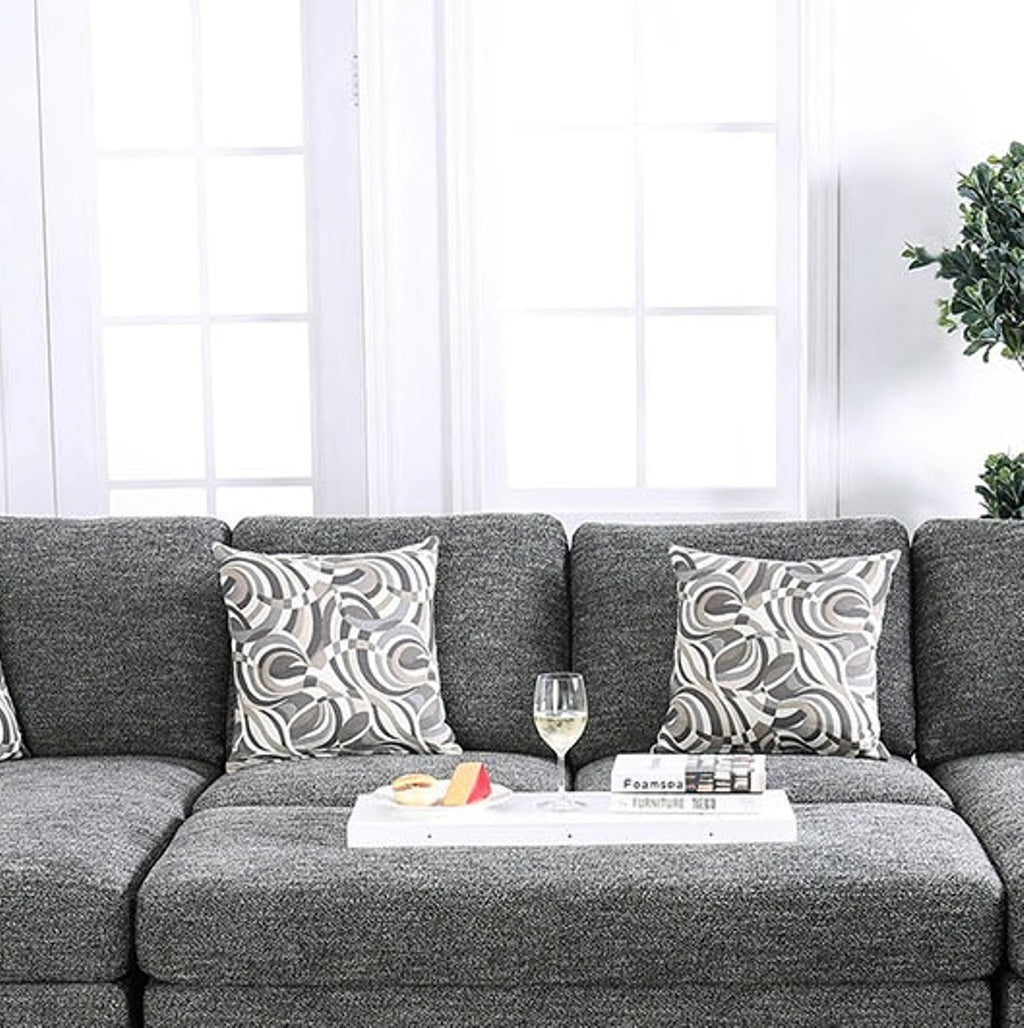 Transform any living space into a modern relaxation nook with this contemporary armless chair. Upholstered in soft gray chenille with a subtle pattern and accompanied by a decorative pillow, the chair blends comfort and style while offering flexible placement alongside sofas or as a standalone accent.