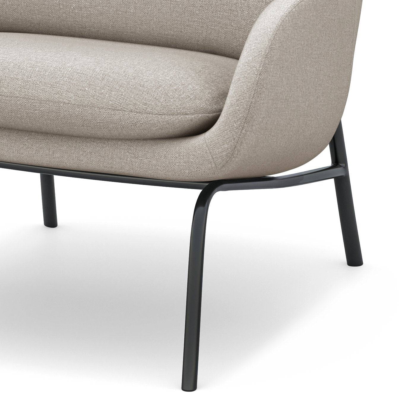 - Features lumbar pillow, deep comfortable cushioned seat, curved back and sides, black powder coated metal base and legs