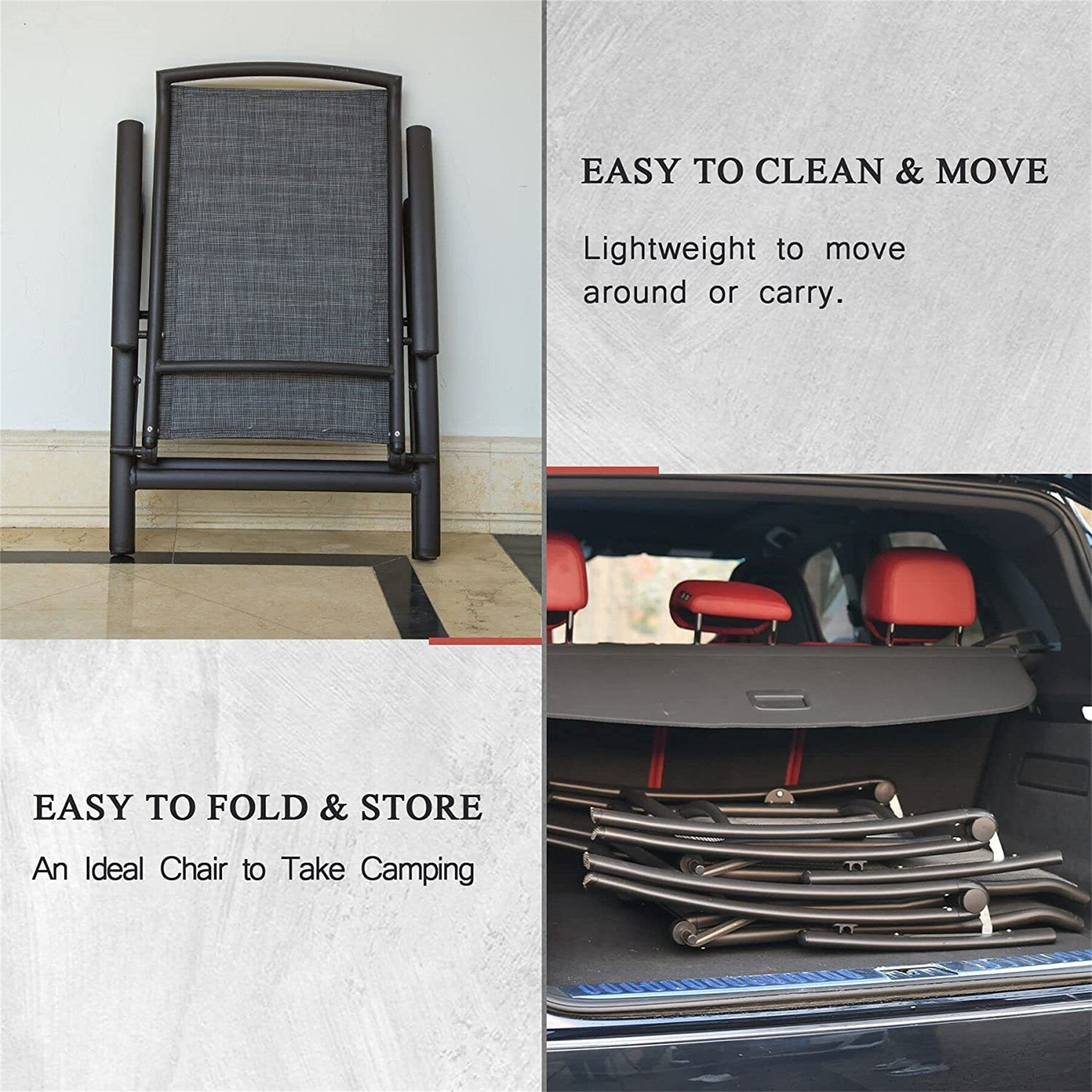 - [ERGONOMIC DESIGN]: Lawn chair’s convenient and practical design fits your body to give you a comfortable experience. Allow your hands to be completely free and relaxed. The high back is great and is really supportive for the neck and head.