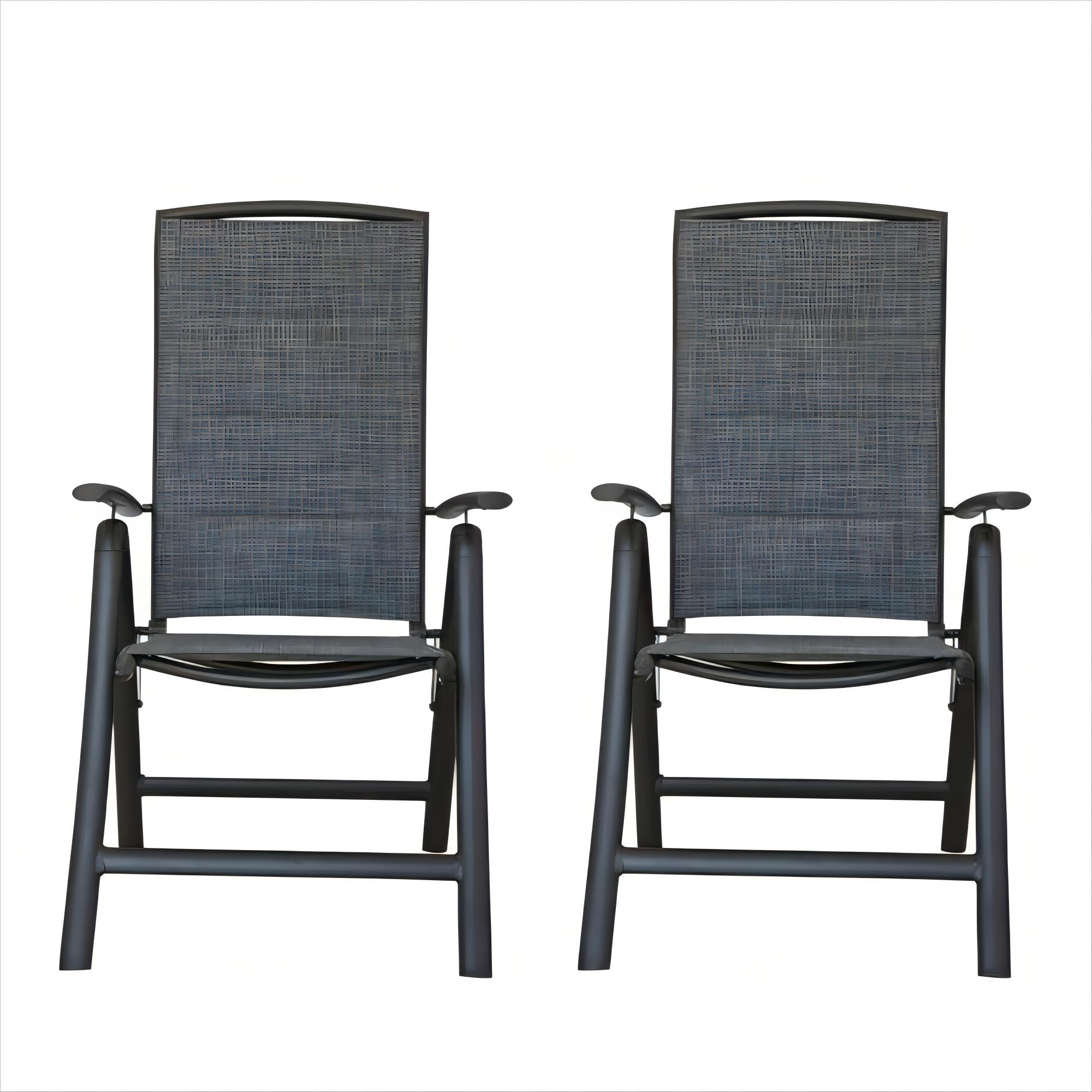 Upgrade your outdoor space with this comfortable, durable set of two folding patio chairs designed for relaxation and convenience. Crafted for versatile use on patios, porches, lawns, and at the campsite, these reclining sling chairs combine a lightweight aluminum frame with breathable double-layered Textilene fabric and an adjustable high backrest for personalized comfort.