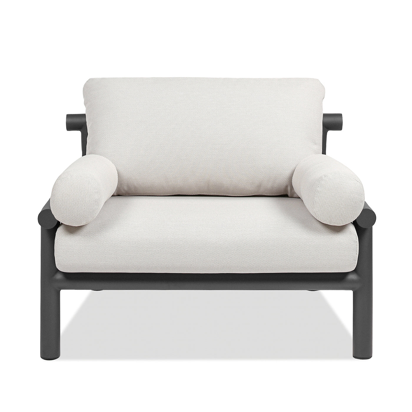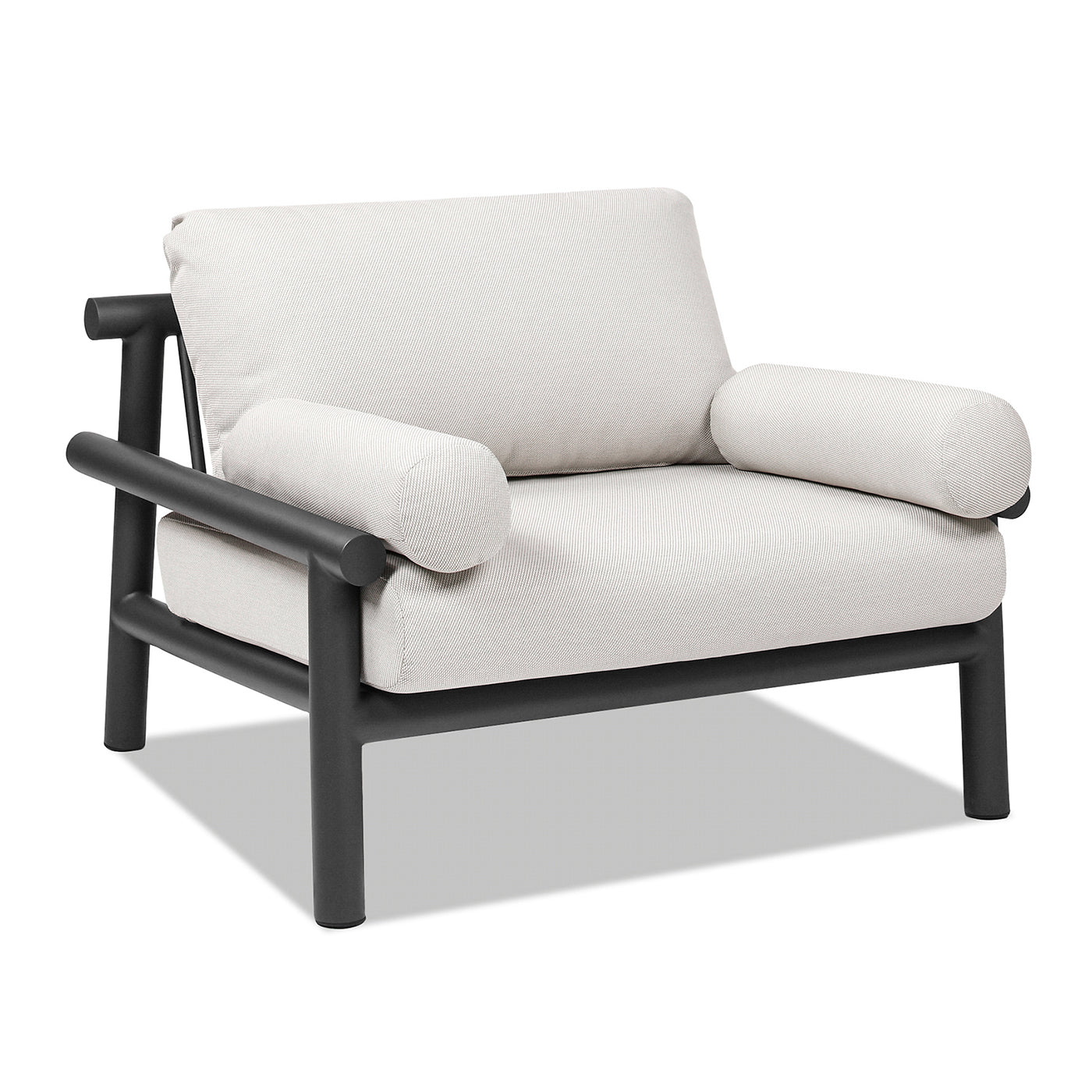 Add relaxed midcentury flair to your outdoor living space with this deep-seating armchair designed for comfort, durability, and easy maintenance. Its rounded dowel frame and plush bolster pillow create an inviting spot to lounge on the patio, deck, or poolside.
