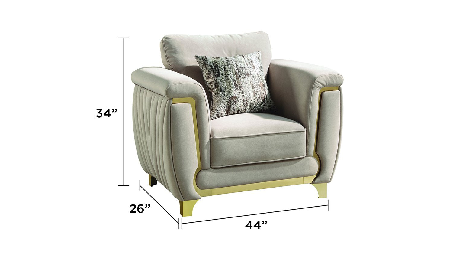 - Metallic Accents: Elegant gold-finish accents on the arms, base, and legs add a refined, upscale look.