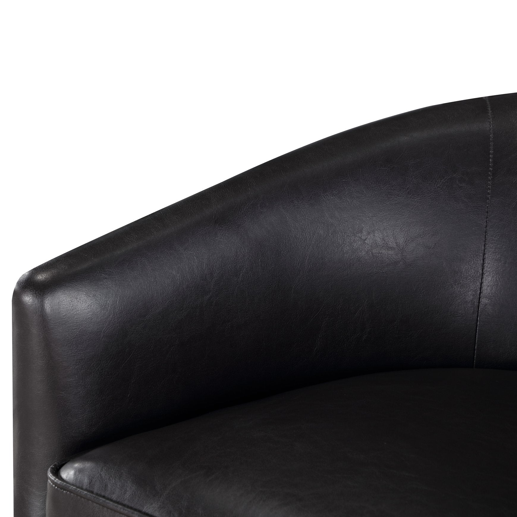 Add a touch of modern elegance and everyday comfort to your living space with this barrel swivel chair. Upholstered in rich brown faux leather over a sturdy wood frame and set on a matching brown wooden swivel base, the chair combines stylish mid-century lines with practical, low-maintenance materials. Its rounded barrel silhouette and cushioned pocket-coil seat cradle you for relaxed seating, while the 360° swivel promotes easy conversation and versatility in any room.