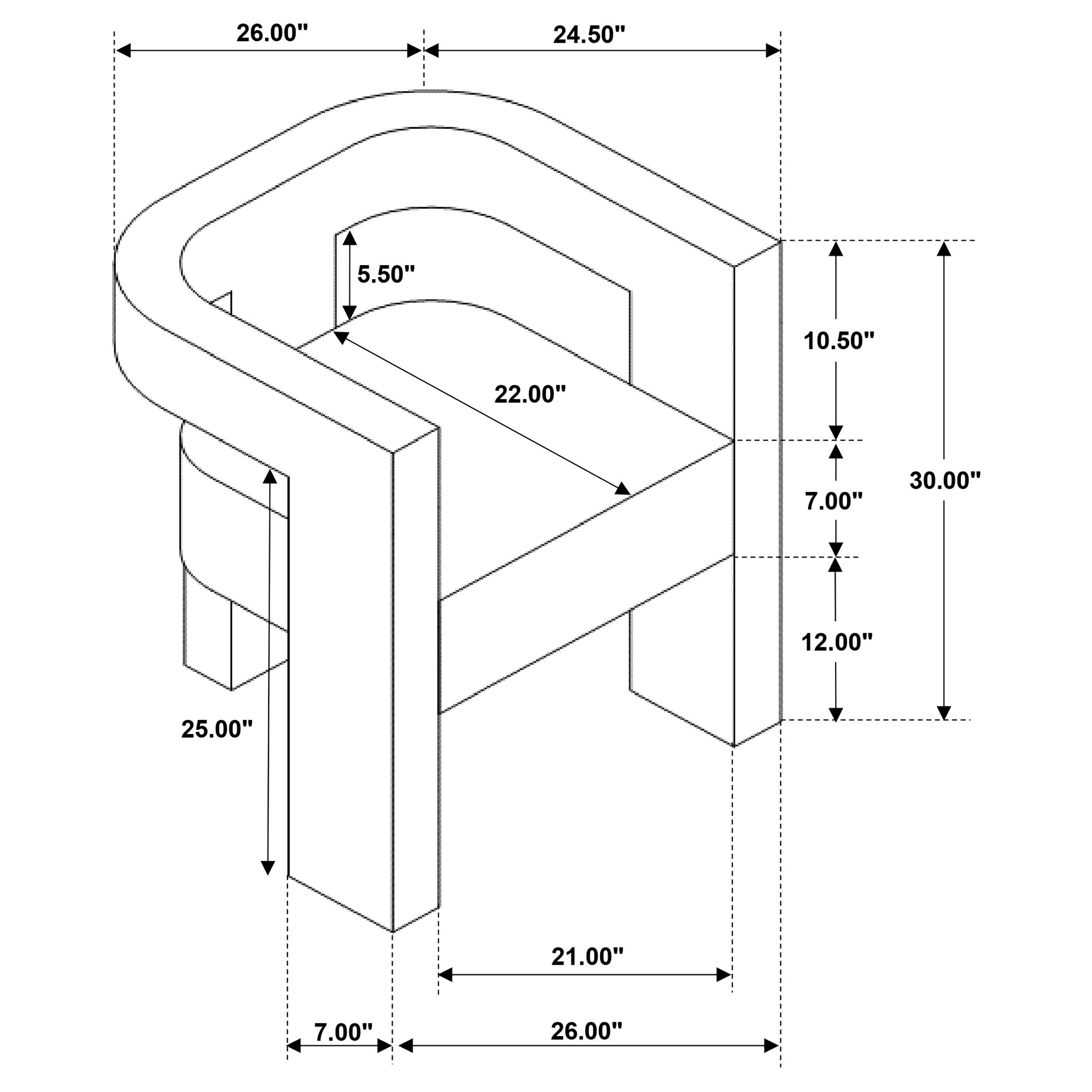 - Fully upholstered in bouclé fabric, offering a rich, textured finish that elevates the chair’s overall aesthetic