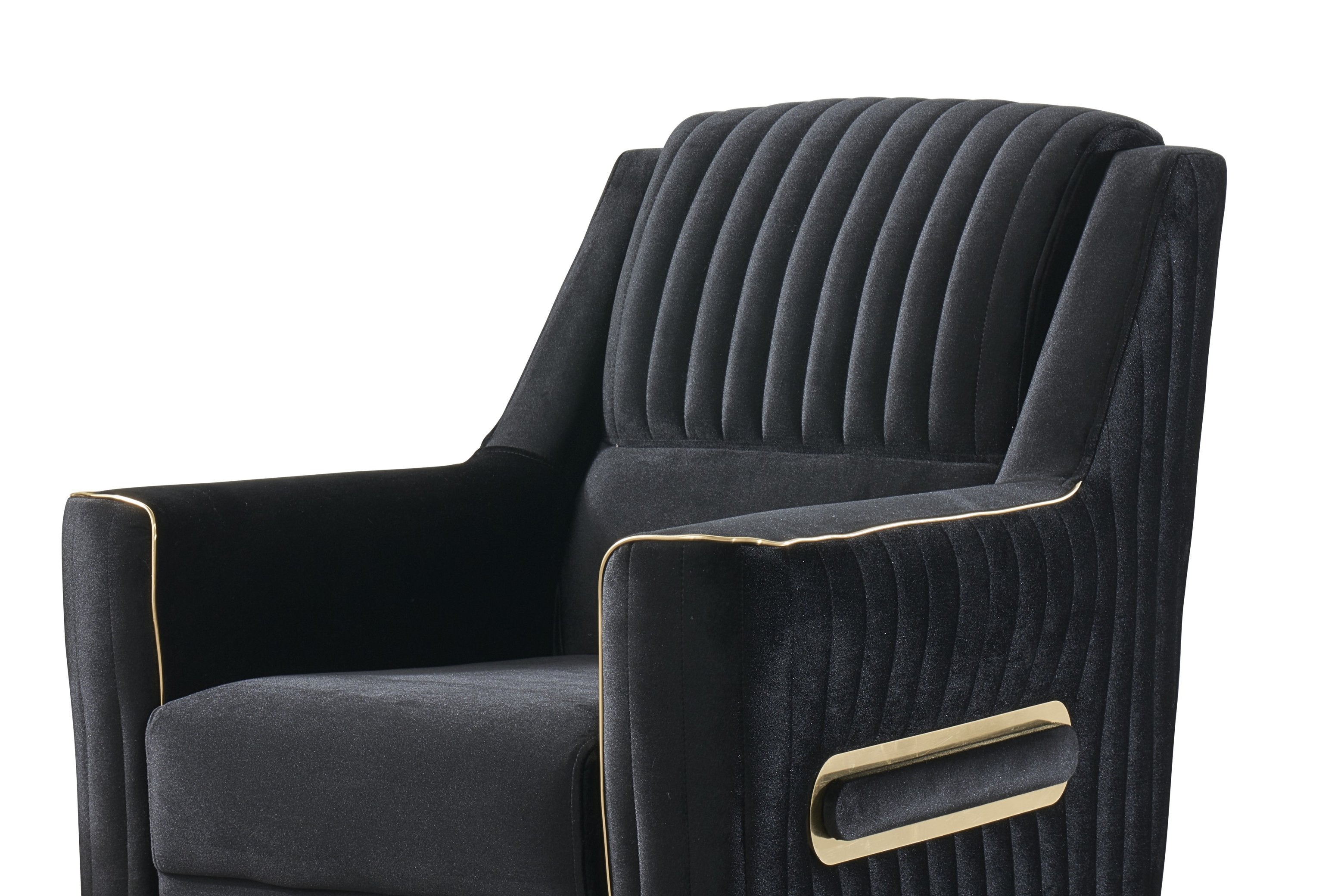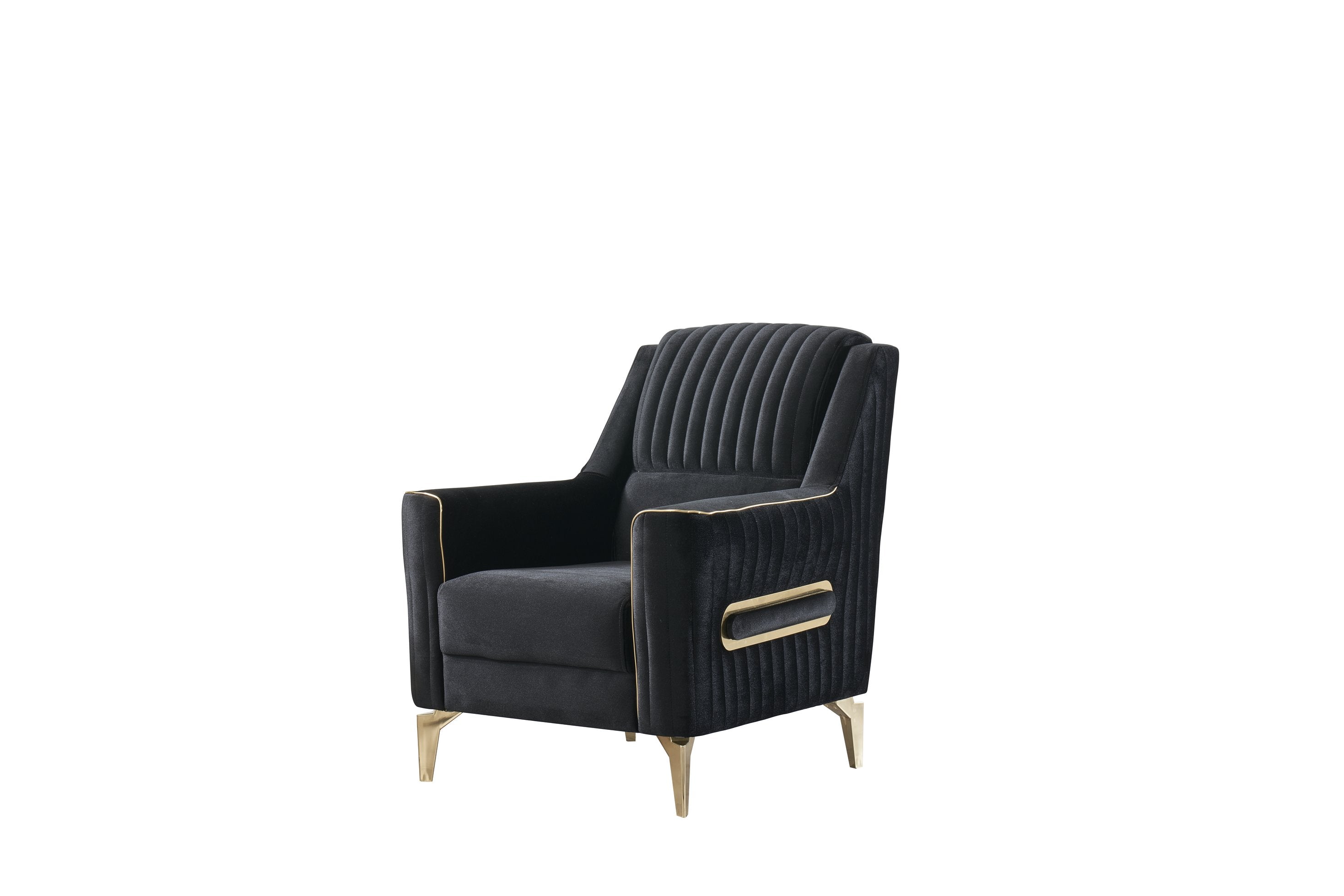 - Design Details: Vertical channel tufting on the backrest and polished gold-finish accents along the arms and legs for a chic, modern look.