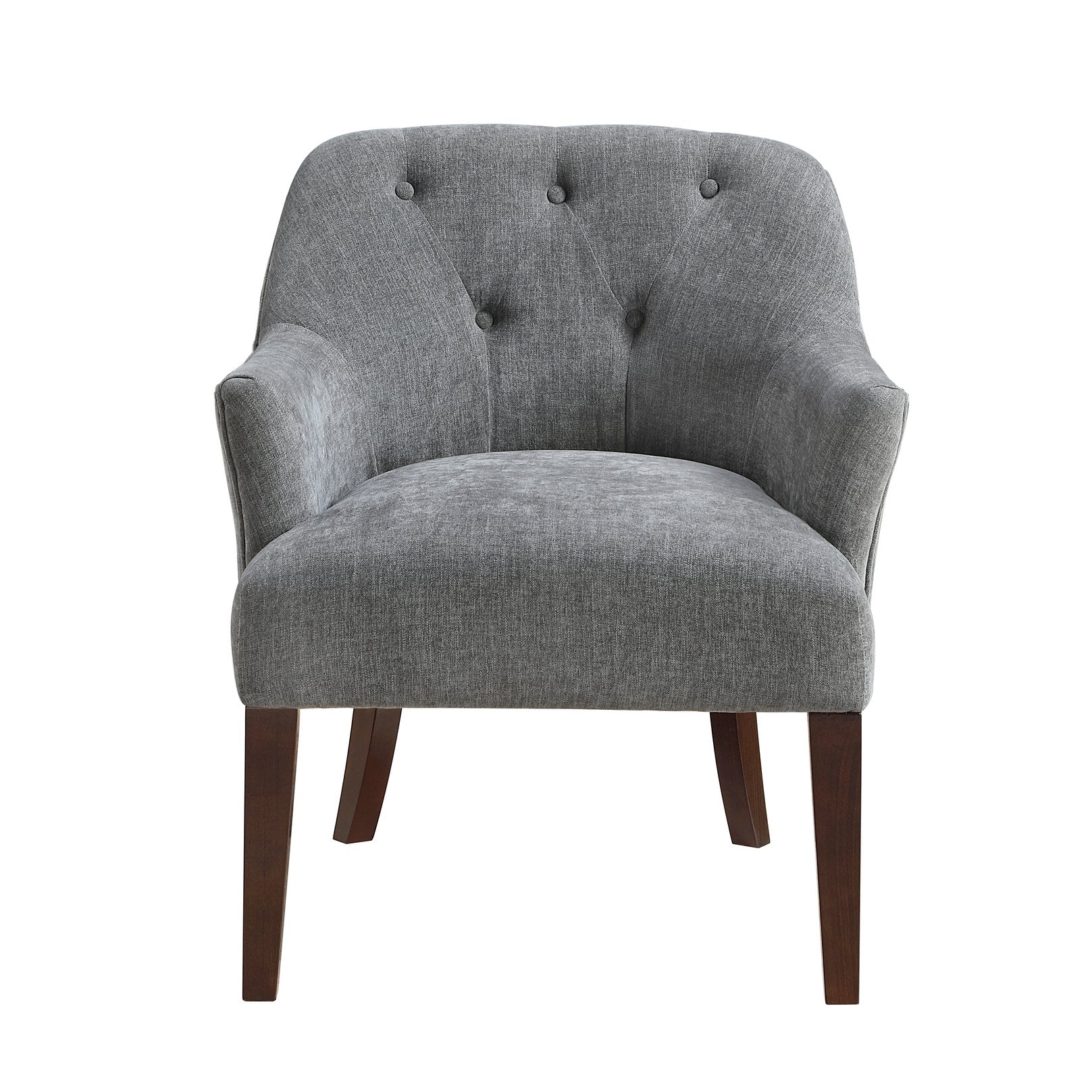 Add timeless style and comfortable support to any room with this modern tufted-back accent chair. Upholstered in textured blue fabric with classic button tufting, the chair blends traditional charm and contemporary lines—ideal for living rooms, bedrooms, or reading nooks. Built on a sturdy plywood frame with high-density foam cushioning and solid wood legs in an espresso finish, it offers lasting durability and a refined look. Easy to assemble and rated to support up to 300 lb, this single-piece accent chair brings both function and sophistication to your space.