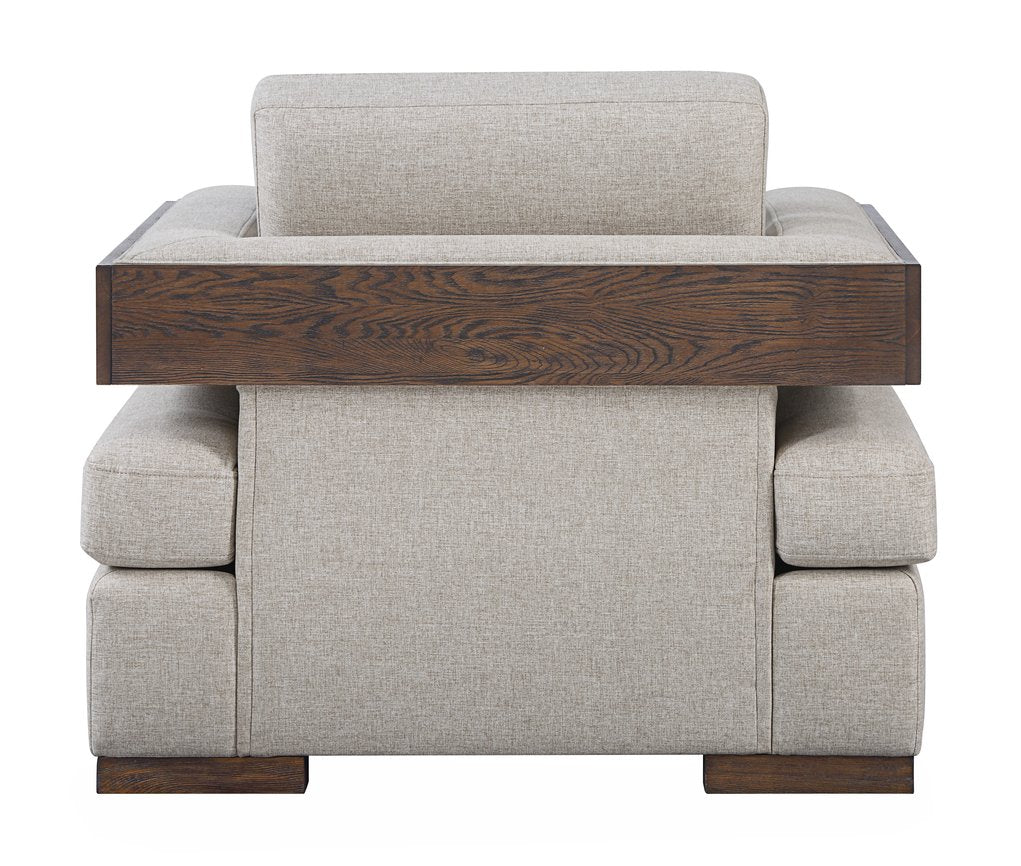 - Design Details: Track armrests framed in walnut-finish wood and wide block legs in a walnut finish for a polished, timeless look