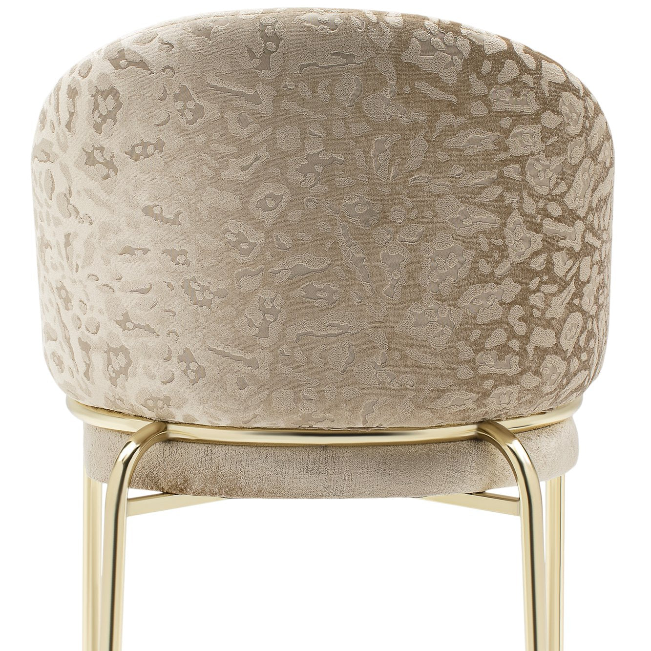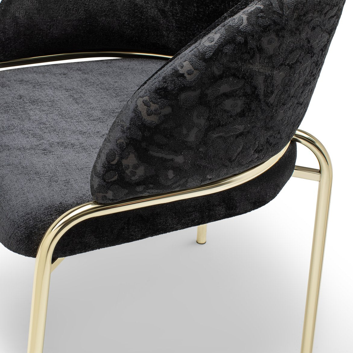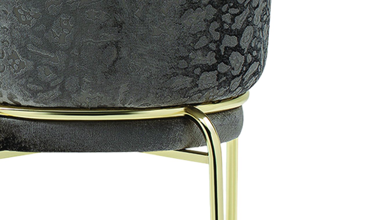 - Materials: Sumptuously upholstered interior in velvet for a soft, inviting seat; exterior wrapped in textured chenille for visual depth and durability; gold-coated metal legs for a luxe finish.