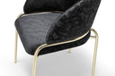 Add a touch of contemporary luxury to your living room, bedroom, or office with this elegant two-piece chair set. Each chair pairs plush seating and refined finishes for a comfortable, statement-making accent that fits both modern and classic interiors. The contrasting fabrics and gold-coated metal legs deliver high-end appeal while the sturdy construction ensures reliable daily use.