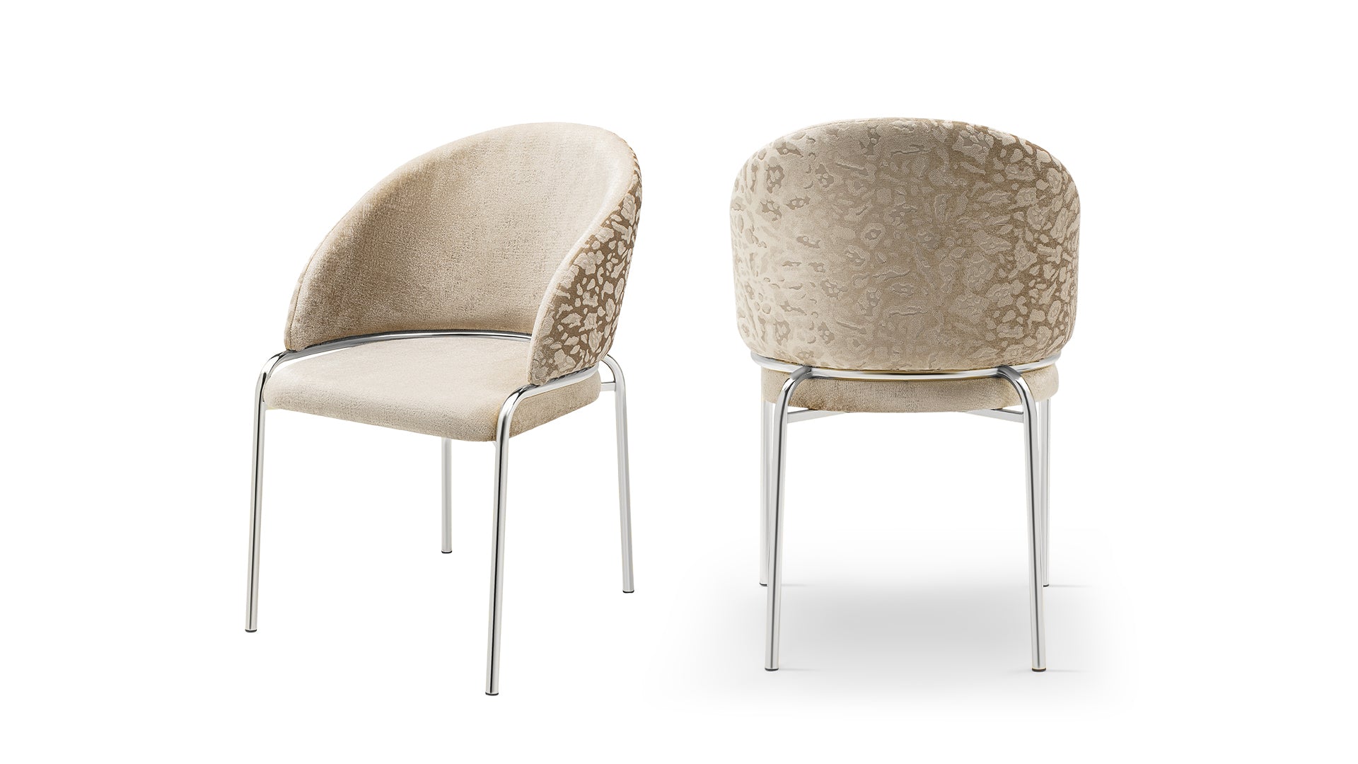 Elevate your living space with these Onyx modern-style chairs, designed to combine plush comfort and contemporary elegance. Perfect for lounge areas, bedrooms, or seating nooks, each chair features a sophisticated dual-fabric finish—sumptuous velvet on the inside and textured chenille on the exterior—paired with clean stainless-steel legs for lasting support and visual contrast.