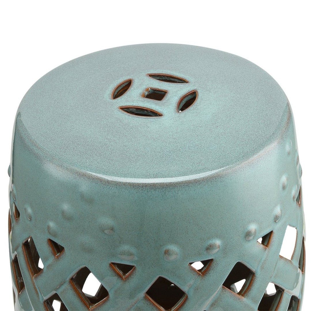 Add a touch of timeless elegance to your indoor or outdoor space with this sturdy antique-blue ceramic garden stool. Its woven lattice pattern and high-gloss glazed finish create a refined accent that works as a side table, extra seat, or decorative stand—perfect for patios, porches, living rooms, and entryways.