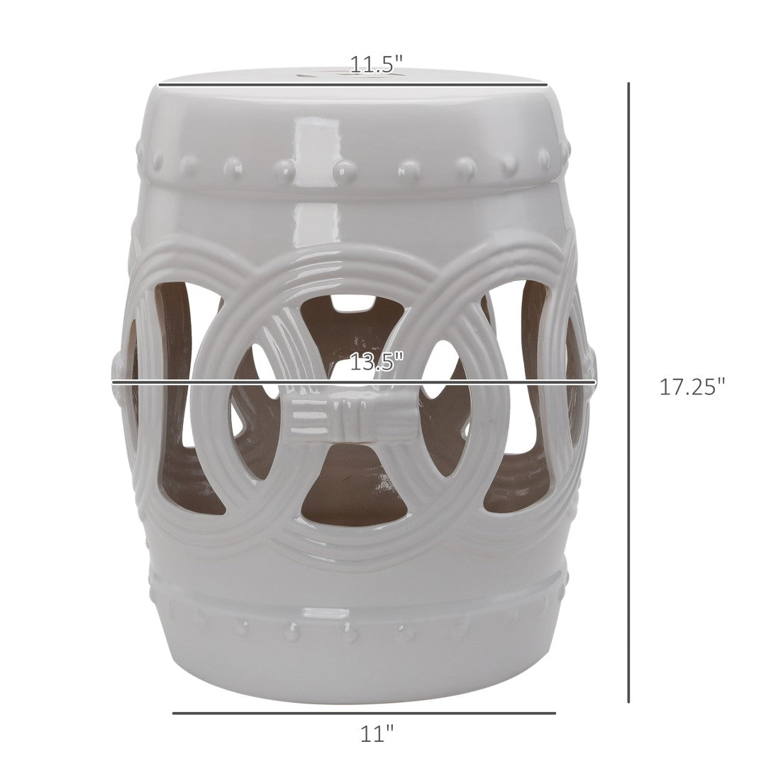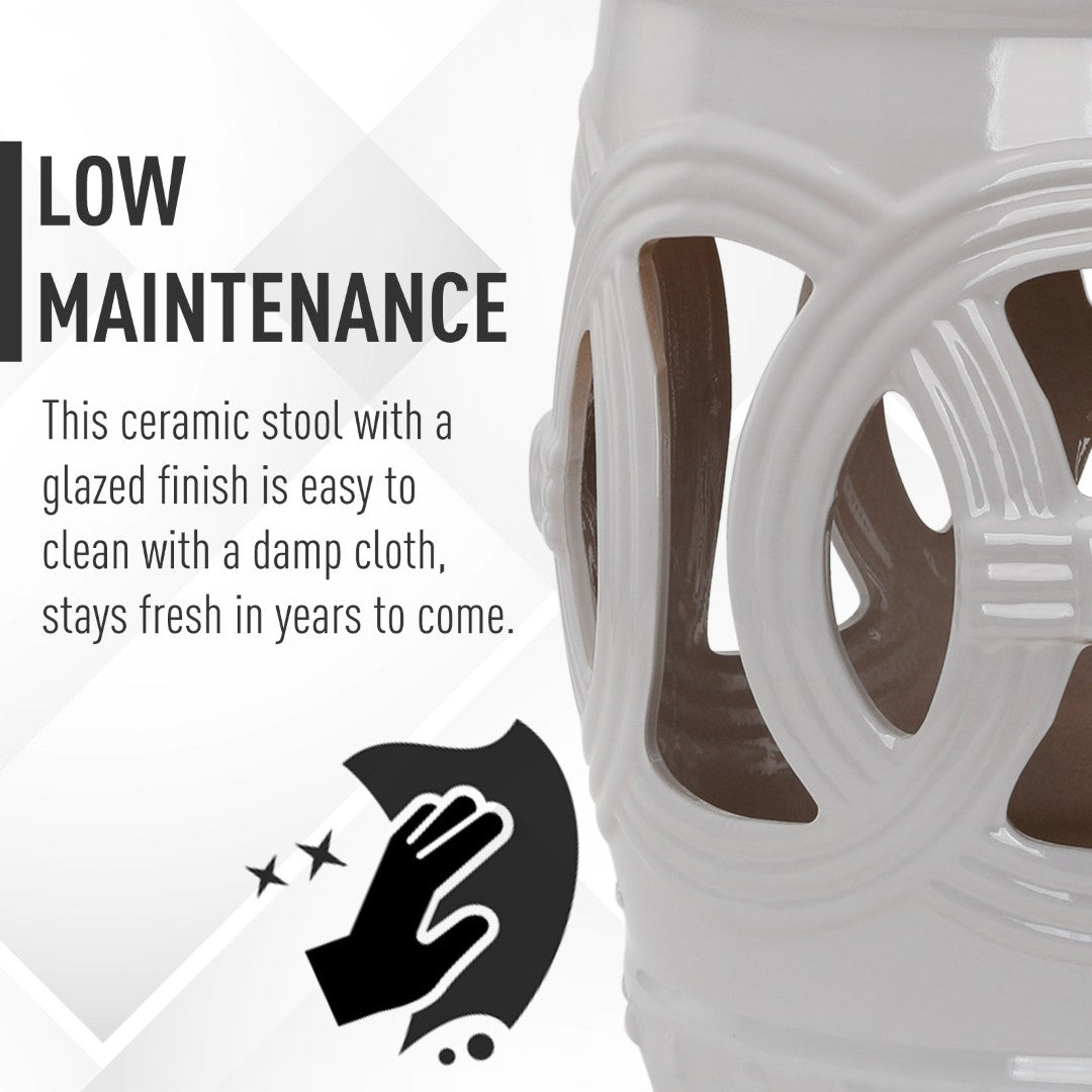 Add a timeless accent to indoor or outdoor spaces with this elegant ceramic garden stool. Crafted for durability and style, it serves as a versatile seat, side table, or decorative element that complements patios, living rooms, entryways, and more.