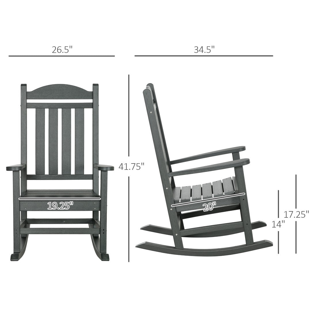 - Like a Wood Chair but Better: Our outdoor rocker features that classic slatted wood look with a superior waterproof, non-fading design. It's made of HDPE, which won't crack, warp, or wear out under moisture like wood. The slats help rain slide off the surface, making maintenance easy.