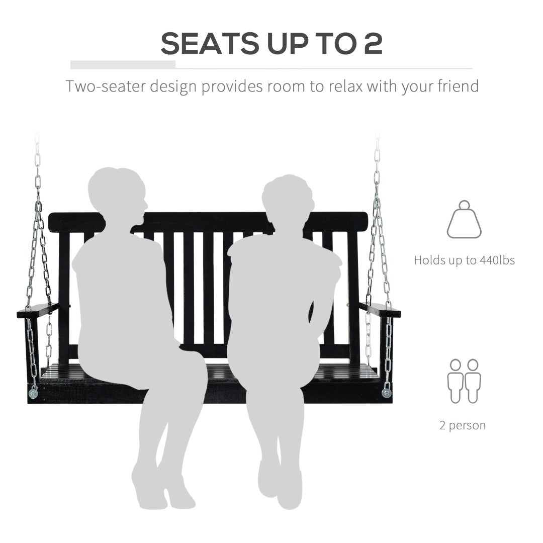 - SEATS UP TO 2: Our front porch swing has a wide seat and a 440 lbs weight capacity, so two people can easily sit together and enjoy their time outside. And this wooden porch swing is also an excellent addition to your porch, backyard, patio, garden, or sunroom.