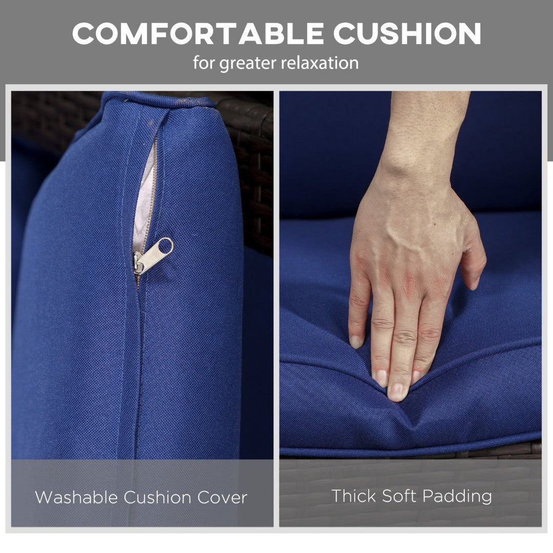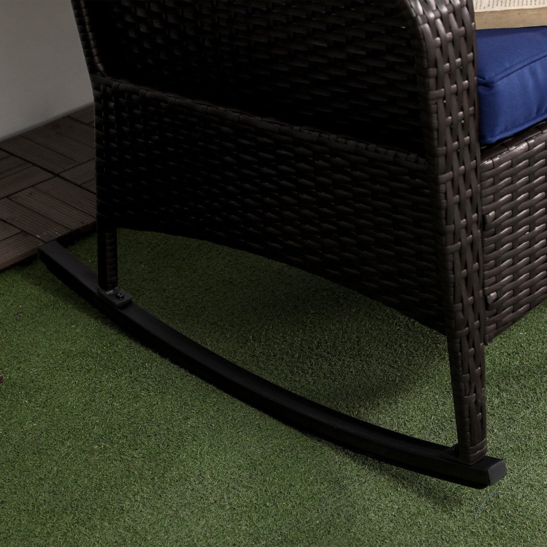 Comfortable, durable, and stylish, this Outsunny outdoor wicker rocking chair brings a relaxed, porch-ready vibe to your patio, garden, or backyard. Handwoven PE rattan over a powder-coated steel frame creates a weather-resistant, low-maintenance piece, while thick seat and back cushions plus wide curved armrests deliver long-lasting comfort for lounging, reading, or socializing outdoors.