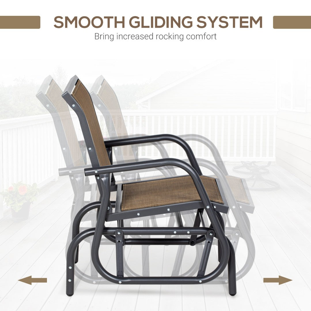 Enjoy relaxed, breezy comfort outdoors with this sturdy mesh glider chair — designed to cradle your back while providing a smooth, quiet glide. Built for patios, balconies, poolside lounges, and garden nooks, its breathable fabric and durable steel frame combine comfort and weather-ready durability for seasons of lounging.