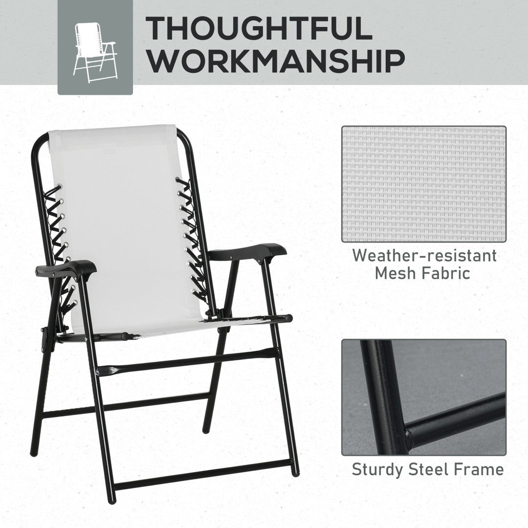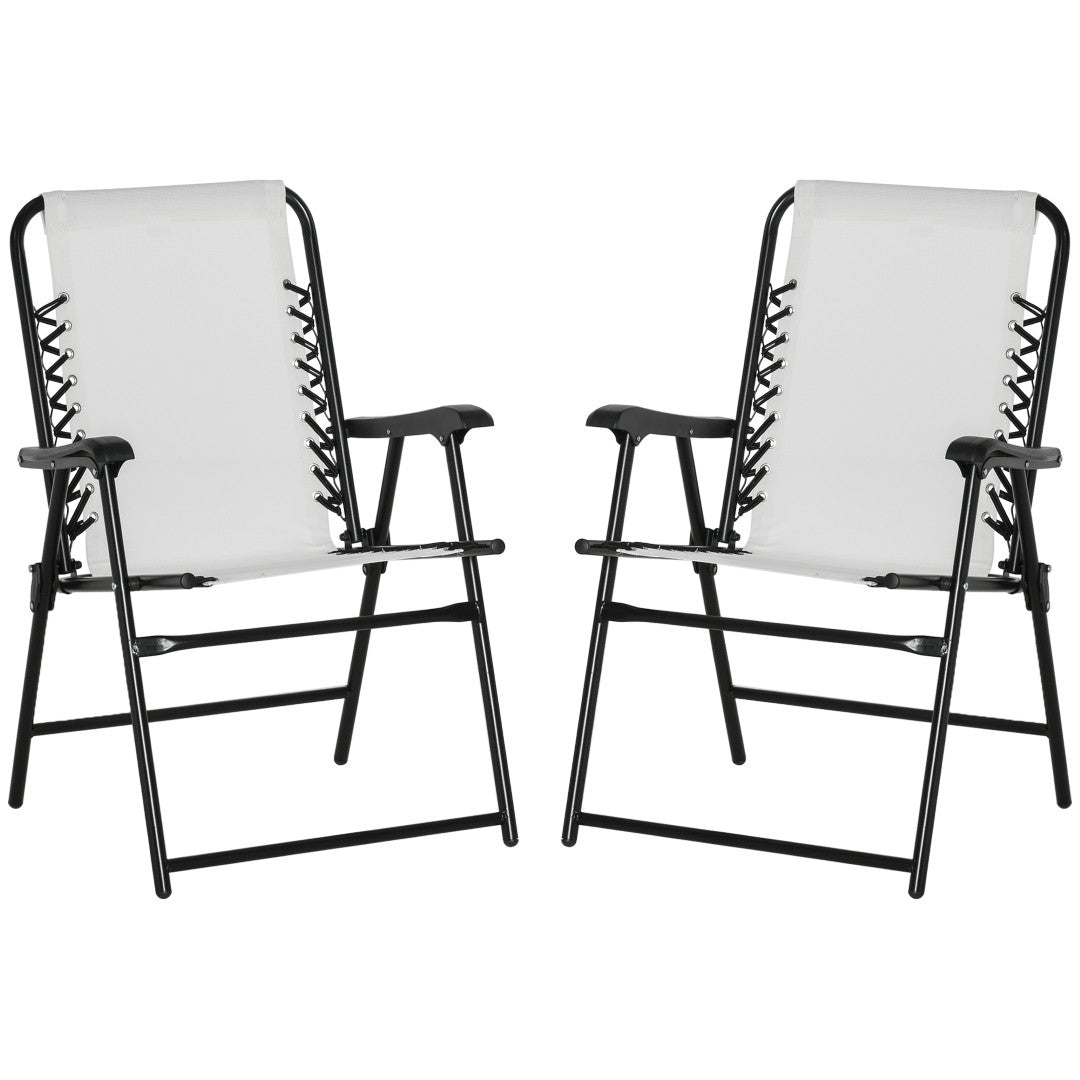 Enjoy comfortable, portable seating anywhere with this Outsunny set of 2 folding bungee sling chairs. Designed for outdoor living, these lightweight lawn chairs combine breathable sling fabric and supportive armrests for relaxed lounging by the pool, at the beach, on the patio, or in the campground. Easy to fold and transport, they’re an ideal companion when you need extra seating that’s both durable and stylish in a cream white finish.