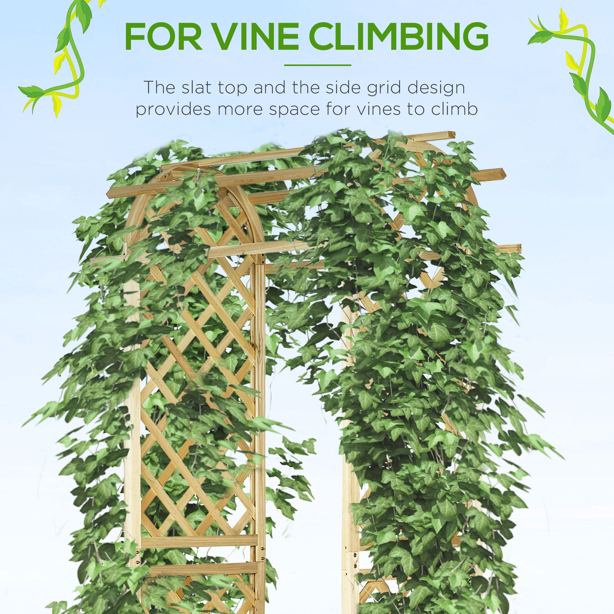 - Garden Arch Trellis: Our trellis arch is a two-trellis tool to grow grapes, morning glory, sweet potato, or other climbing plants. Practical and pleasant, a pergola-style top allows vines to weave overhead.