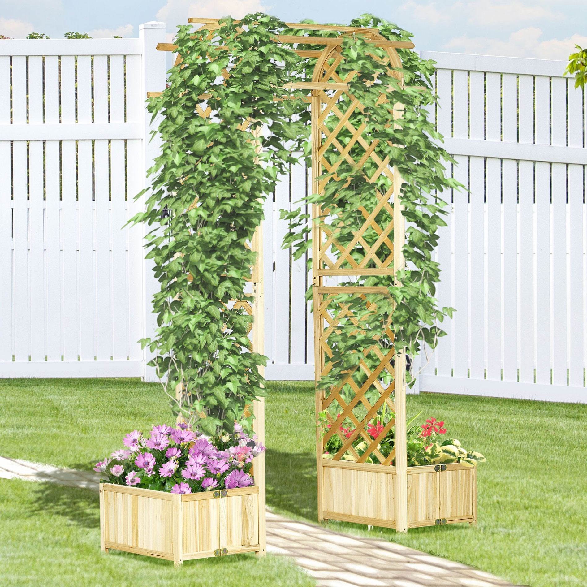 - Pergola-style Top: Elevated lattice roof encourages vines to grow overhead, creating a shaded, living canopy and an attractive garden focal point.