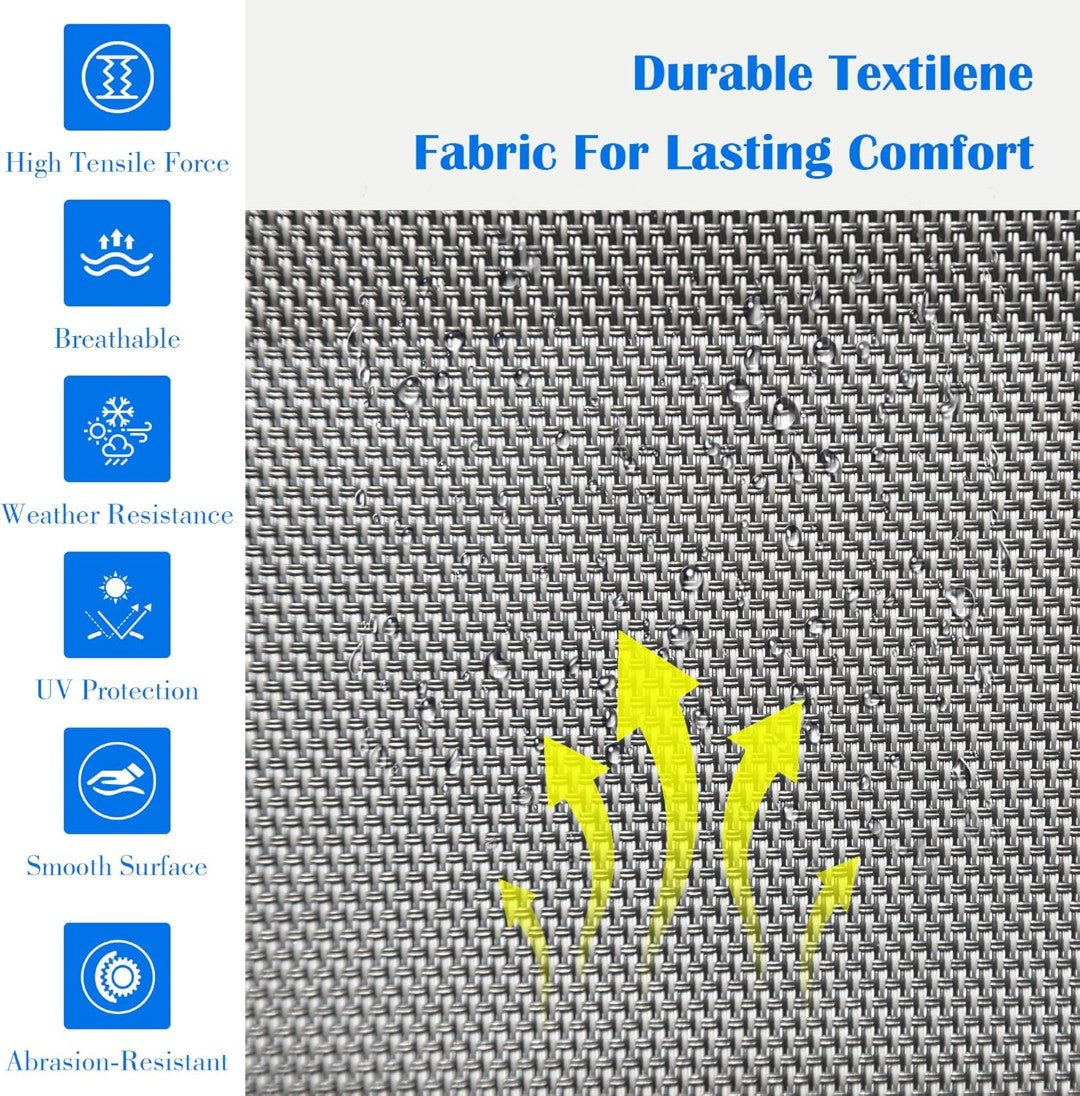 - Textilene Fabric Seat: Breathable, weather-resistant material that dries quickly and resists fading for long-lasting outdoor use.