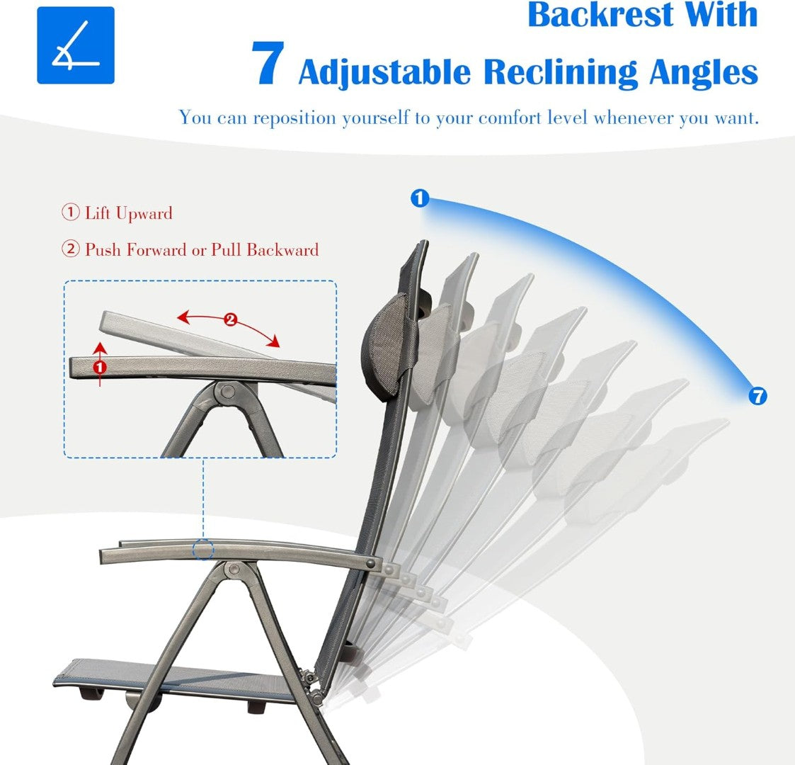 Enjoy outdoor comfort and convenience with this pair of folding patio chairs designed for durability and portability. Ideal for camping, tailgating, backyard lounging, or extra seating at events, these chairs combine a sturdy aluminum frame with breathable Textilene fabric and thoughtful ergonomic features to keep you relaxed wherever you go.