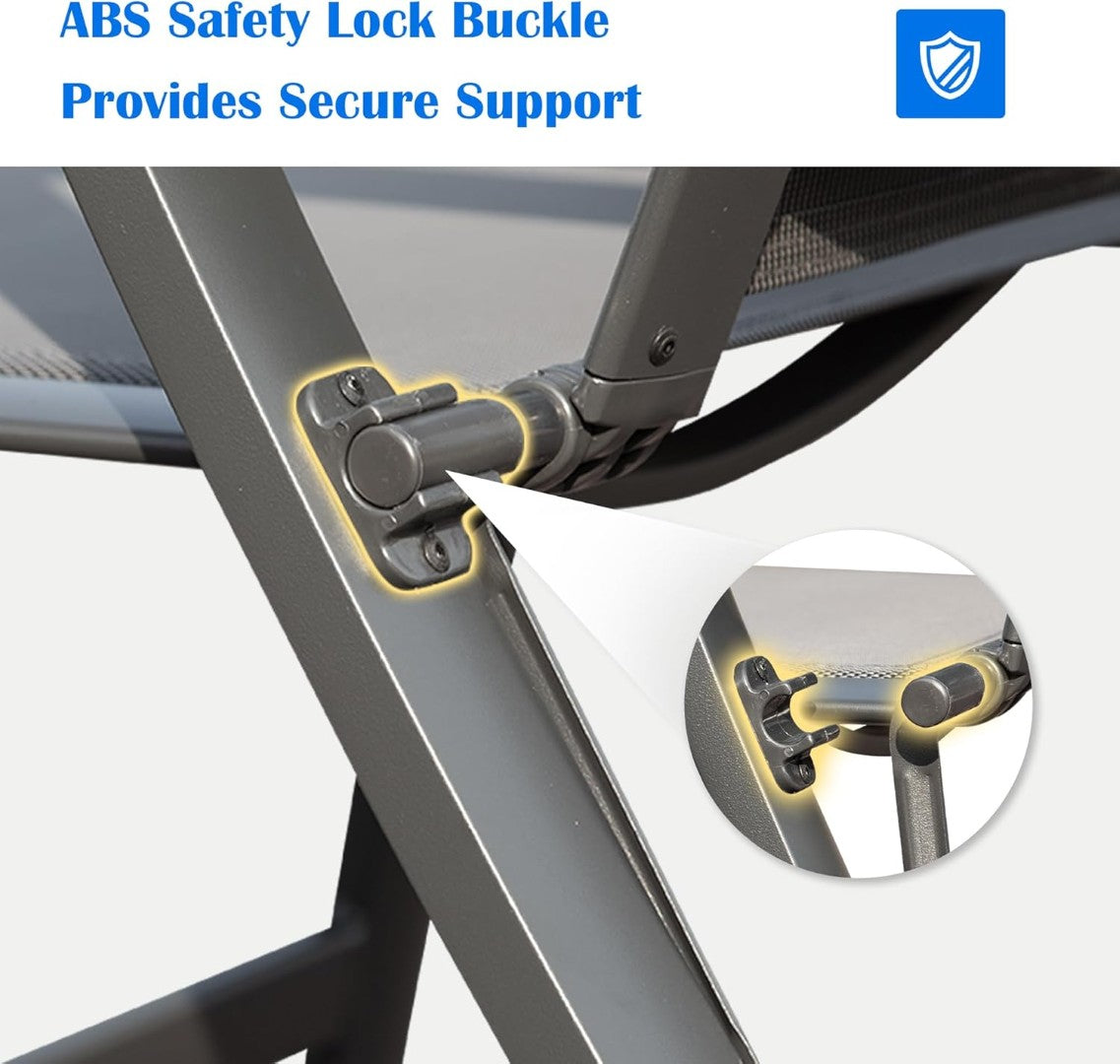 - Upgraded Comfort - Crafted with breathable, comfortable Textilene fabric, these chairs feature high quality aluminum frame for added comfort. The quick-dry, durable fabric is designed to withstand regular use, making it an excellent companion for sunbathing and camping.