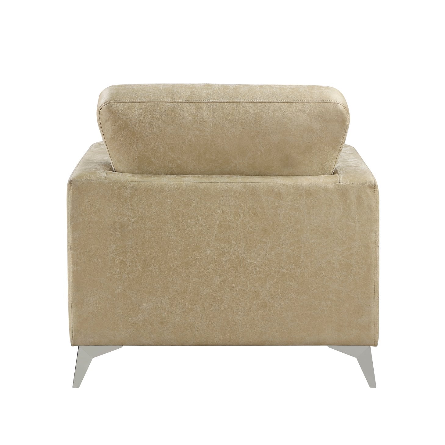 Add a touch of contemporary refinement to your living space with this sand-hued microfiber accent chair. Clean lines and a softly polished fabric combine with sleek silver-finish metal legs to create a versatile piece that complements modern and transitional interiors. The chair offers comfortable seating with defined armrests and a supportive cushion, making it ideal for living rooms, reading nooks, or guest seating.