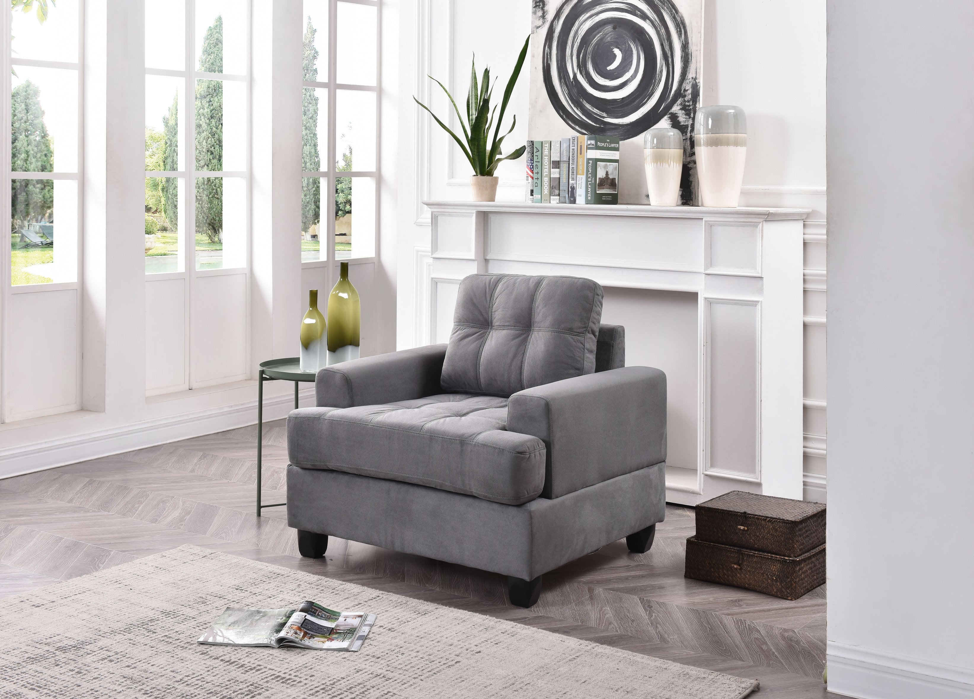 - Color: Neutral gray microfiber that coordinates with a wide range of decor