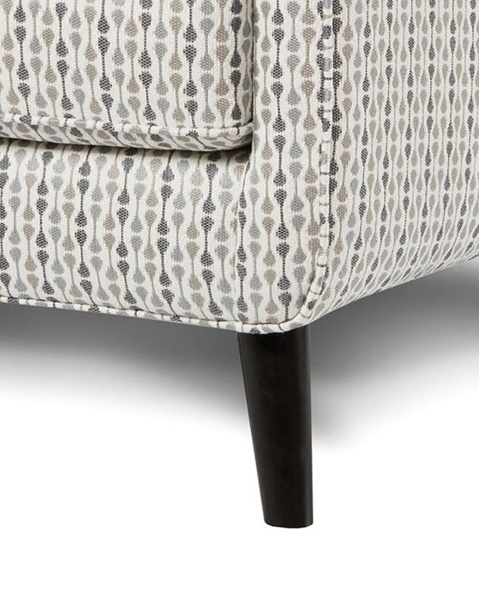 - Trim: Welt cord trim provides a refined, masked outline that complements the patterned upholstery