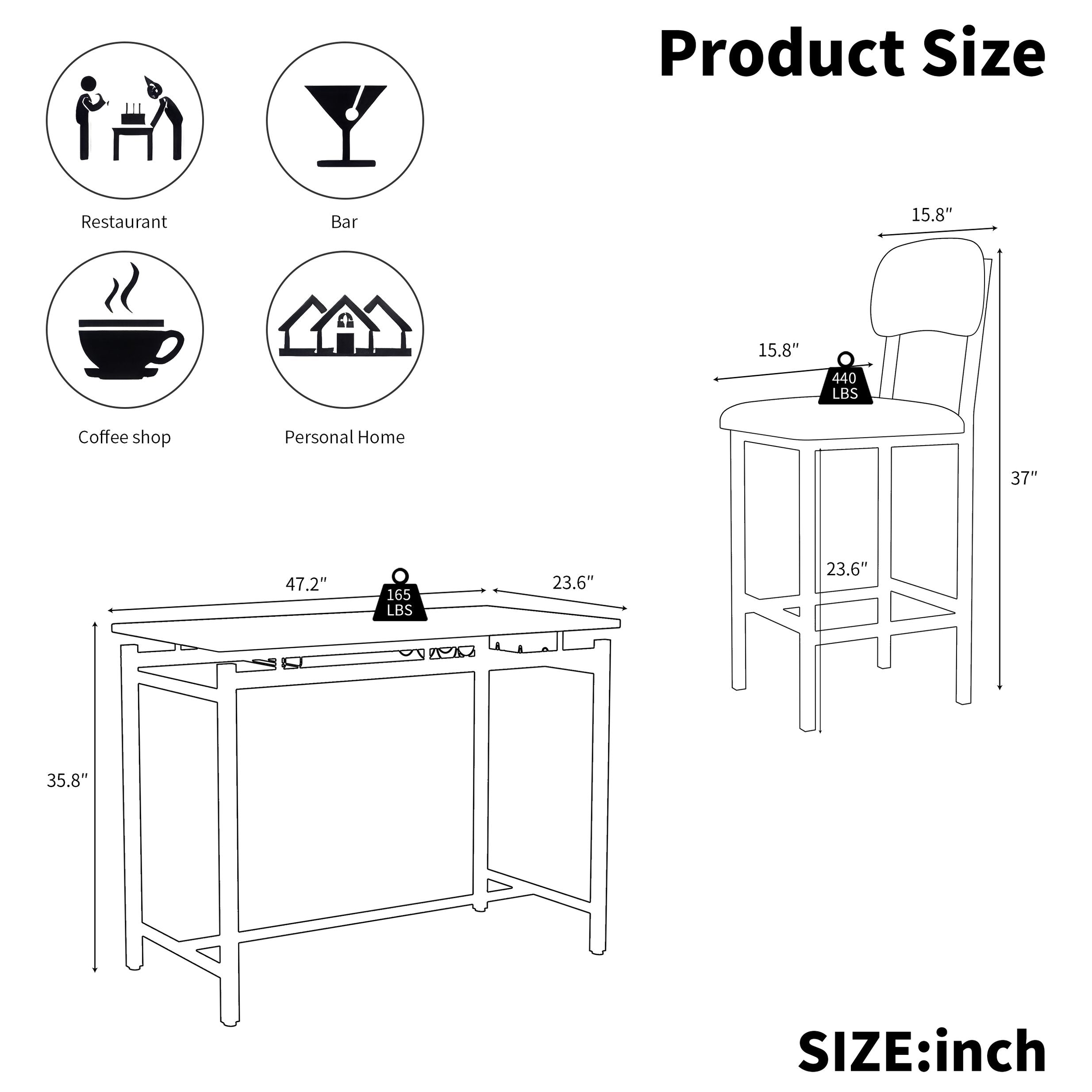 - EASY TO ASSEMBLE AND MAINTAIN: All the assembly hardware and tools come with this counter height kitchen table set. With illustrated instructions, this rustic kitchen table and chair set can be assembled within 30 min without effort. Dimensions: Table Size: 47.3” L x 23.7” W x 35.9” H, Chair Size: 15.8” L x 15.8” W x 37.8” H.
