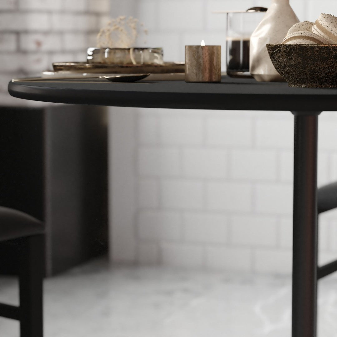 - Top: 36" round birchwood tabletop with durable black PVC edge for a polished look and added edge protection.