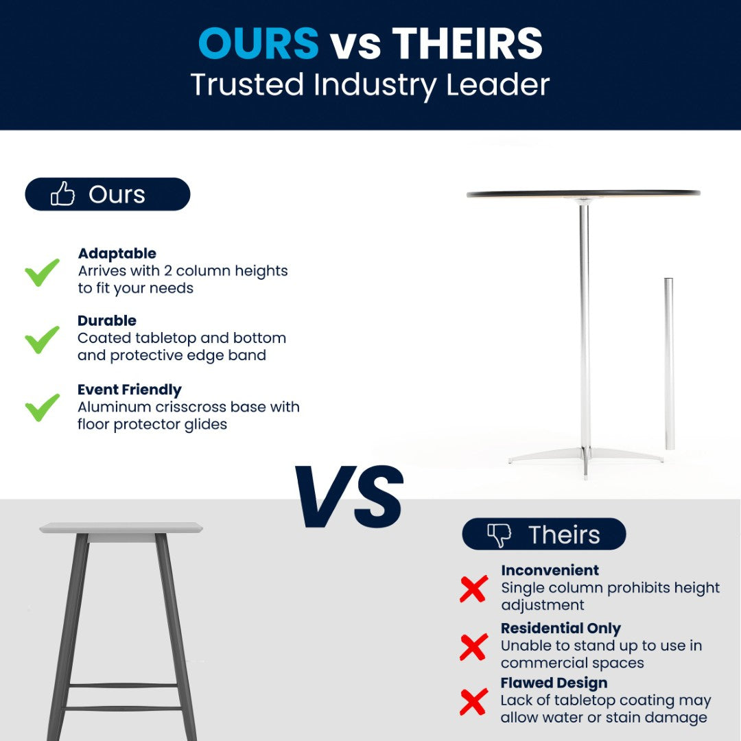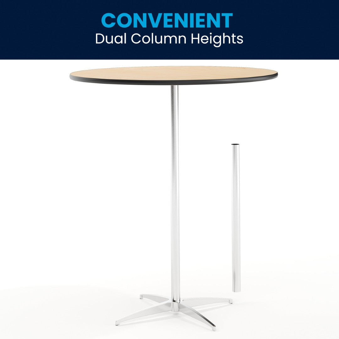 Elevate your event spaces or everyday dining with this versatile pub-style cocktail table that combines commercial durability with clean, modern design. Ideal for banquet halls, bars, conference centers, break rooms or home use, the table converts quickly between standard and bar heights to suit seating or standing arrangements. Built for frequent setup and transport, it disassembles easily for storage while the robust finish and floor glides protect both the top and your venue surfaces.