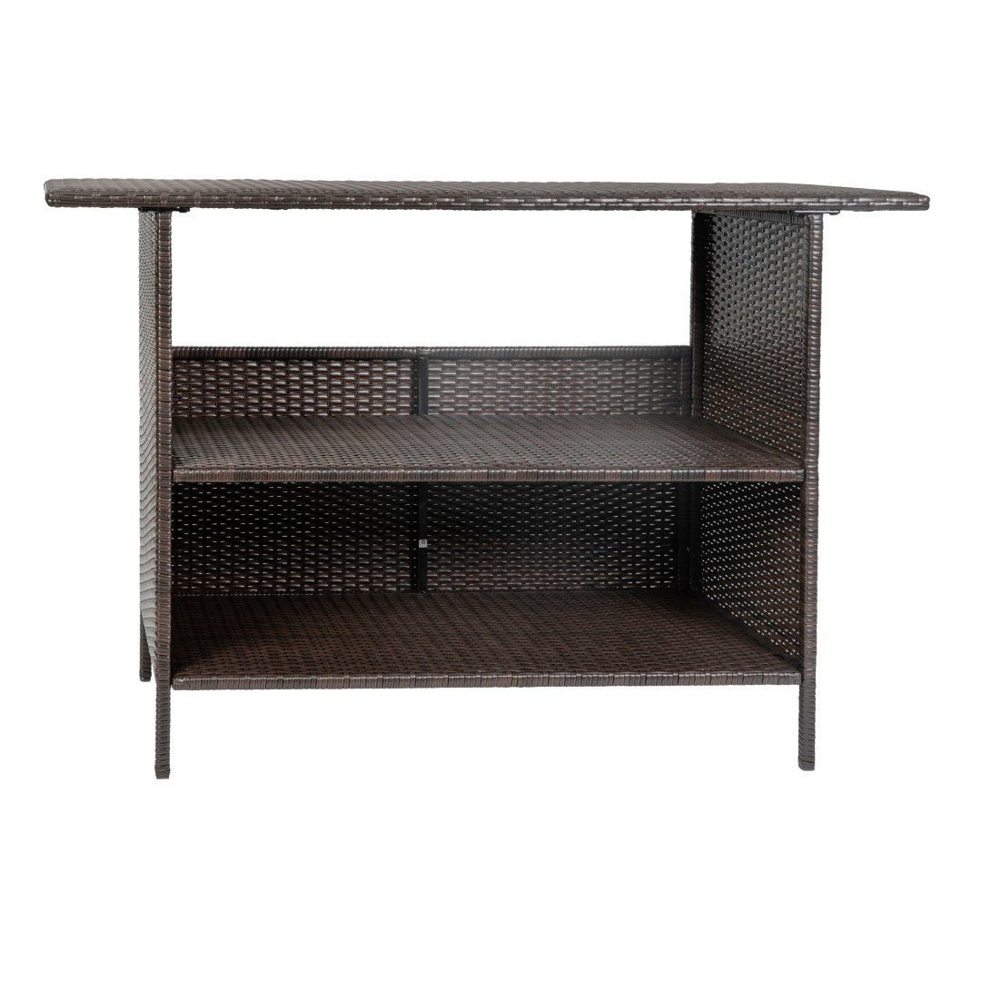 - Indoor/Outdoor Wicker Rattan Patio Bar Counter Table With Two Shelves
