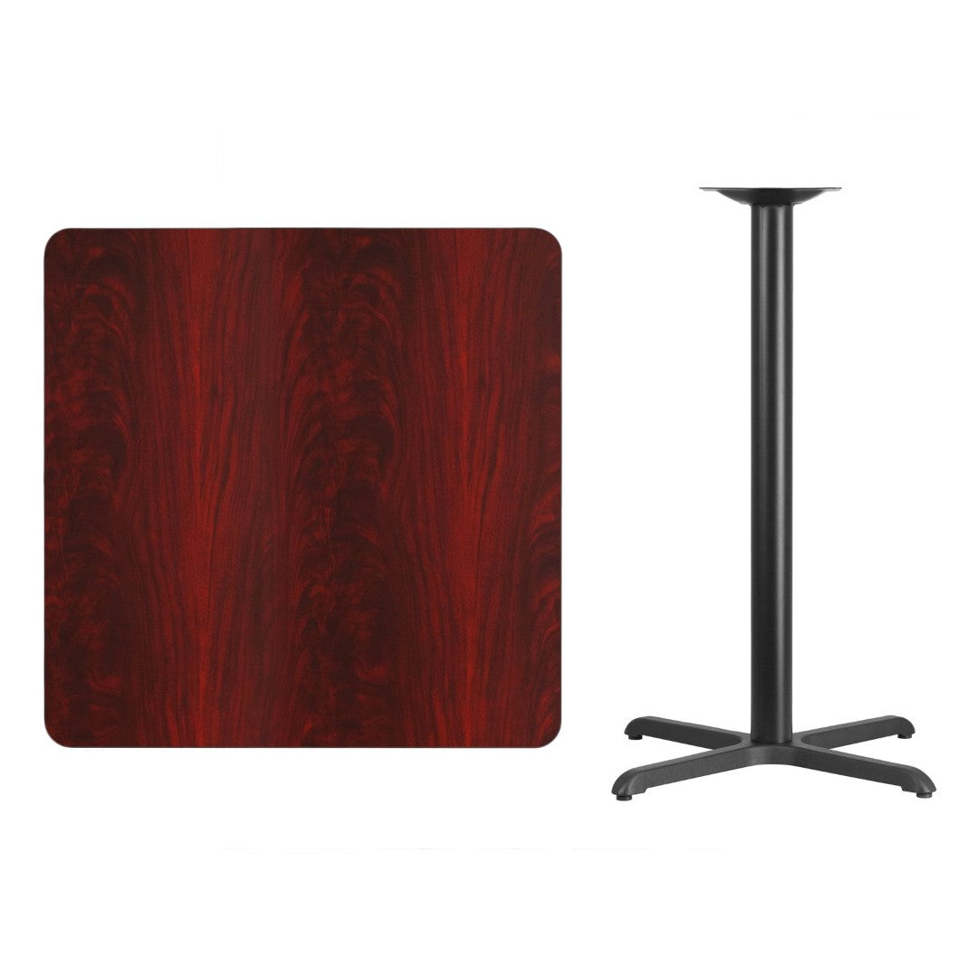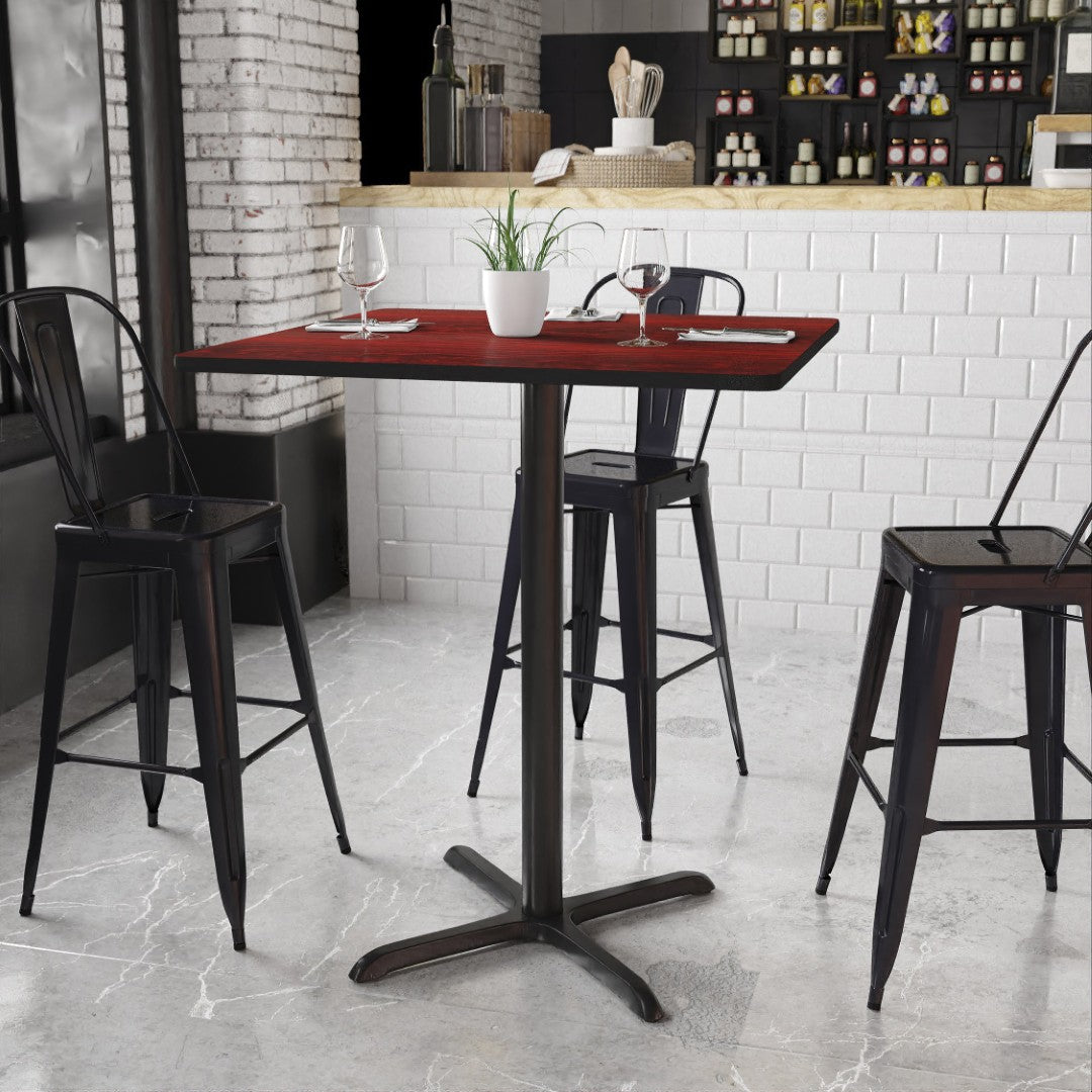Elevate your dining area or hospitality space with this durable bar-height table set that combines commercial-grade construction with a versatile reversible top. Ideal for restaurants, break rooms, cafeterias, or home rec rooms, the set pairs a rugged 36" square laminate tabletop with a stable 30" x 30" x-height X-base, delivering a professional look that resists heat, scratches, and moisture while remaining easy to maintain.