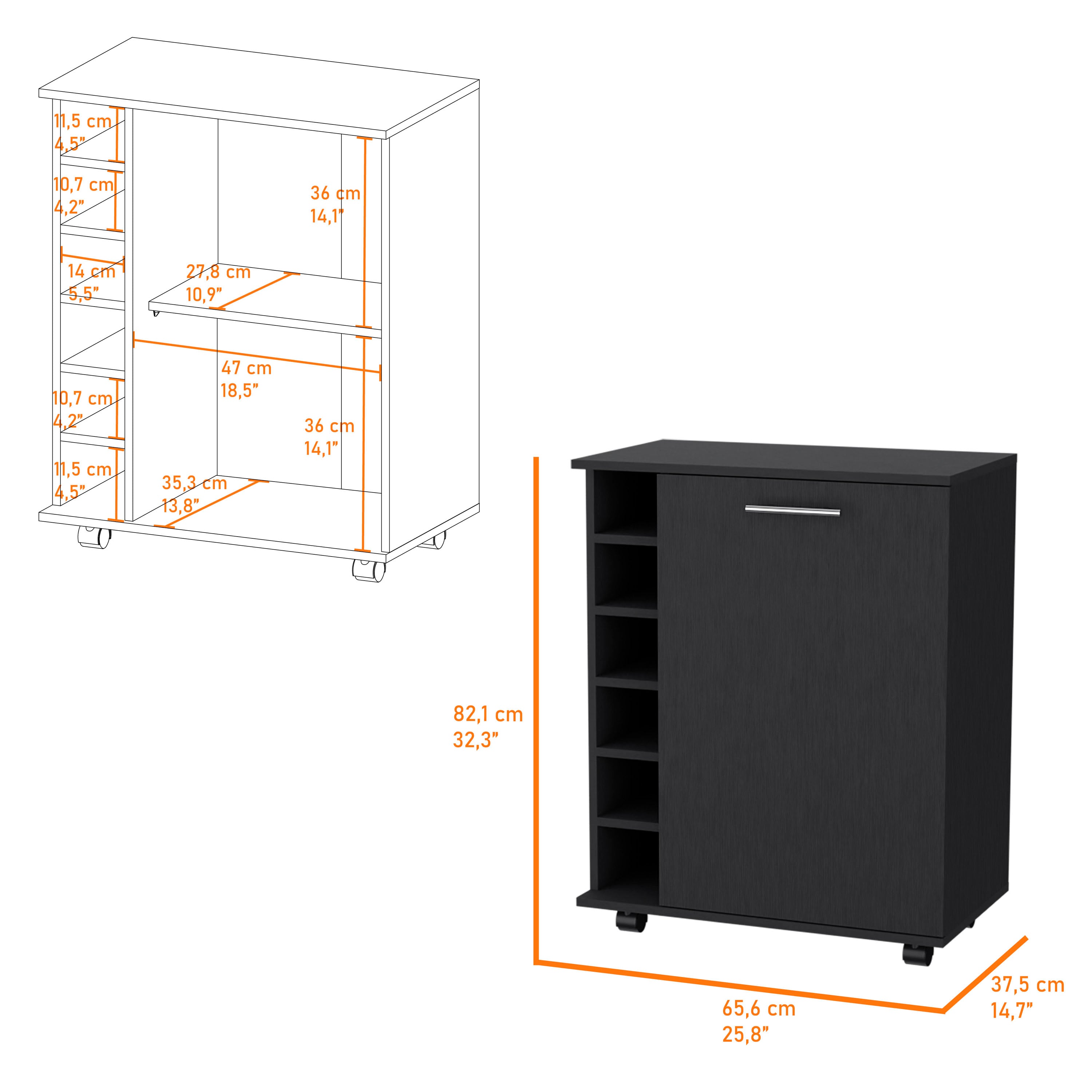Bring effortless sophistication to your home entertaining with this compact bar cart, designed to securely store bottles while offering display space and hidden storage. Its wenge finish and clean lines complement contemporary decor, and smooth caster wheels let you move drinks and accessories where the party goes.