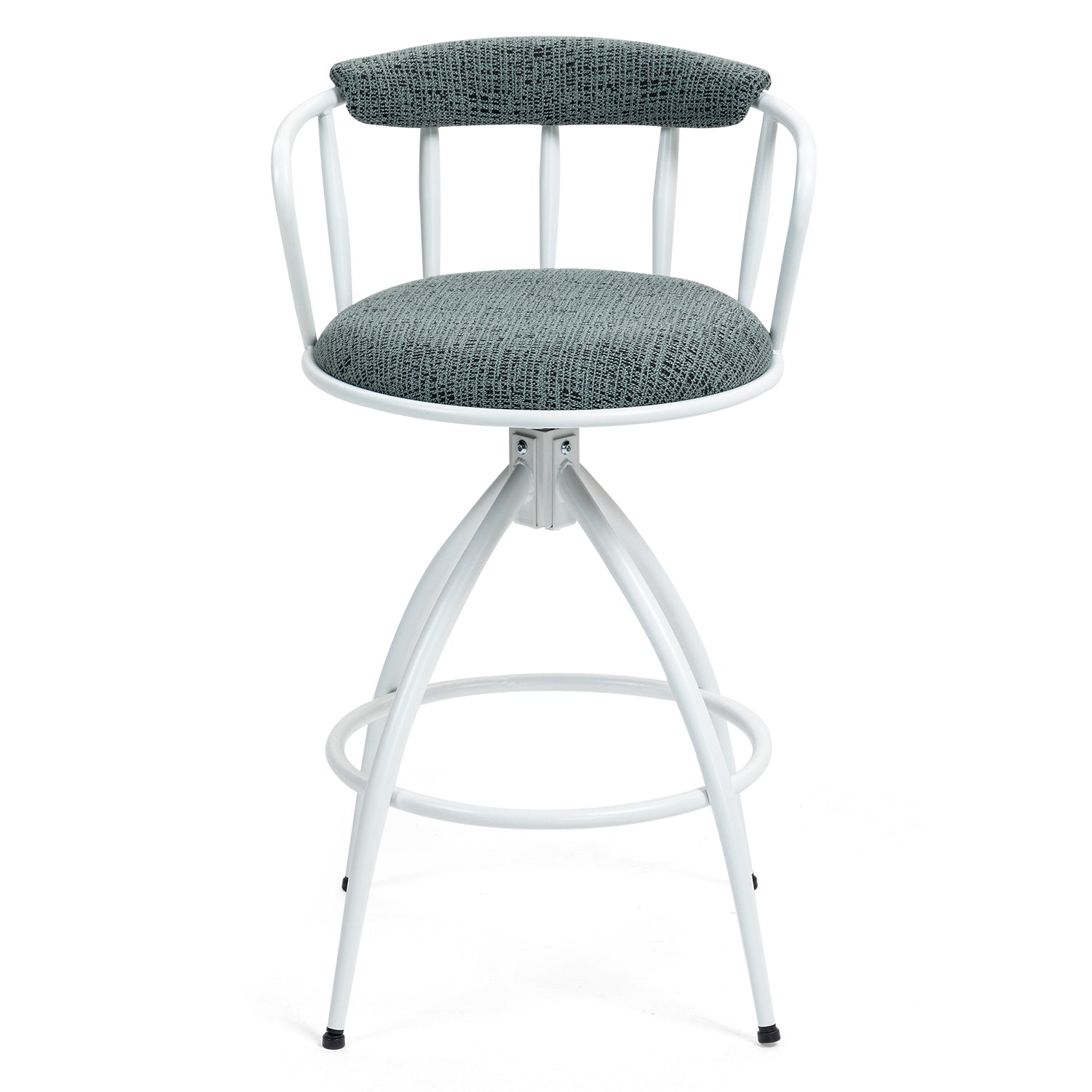 Add modern industrial style and comfortable seating to your kitchen island or home bar with this set of two swivel counter-height stools. Upholstered in durable blue fabric and supported by a sturdy metal frame, these chairs combine a high-density sponge cushion with a minimalist silhouette for everyday use and entertaining. The 360° swivel makes it easy to get in and out, while the metal footrest and reinforced legs provide stability and long-lasting support.