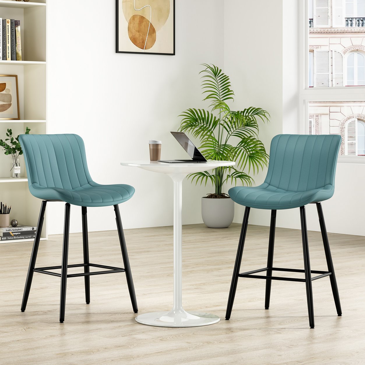 - Materials: Durable faux leather upholstery (waterproof PU) for a soft, smooth feel and metal pedestal base with slender legs in polished chrome for stability and modern appeal