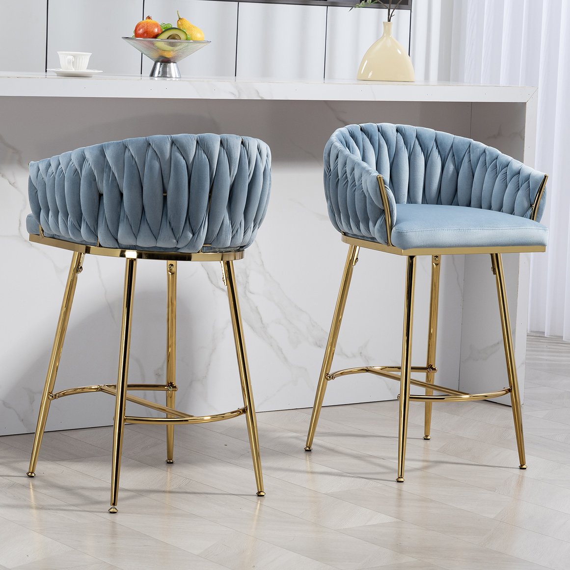 Give your kitchen island or home bar a modern, luxurious upgrade with this set of two counter-height stools. Upholstered in soft, skin-friendly velvet and supported by sleek golden chrome bases, these stools combine comfort, durability, and contemporary style—perfect for casual dining, entertaining, or adding a pop of color to your living space.