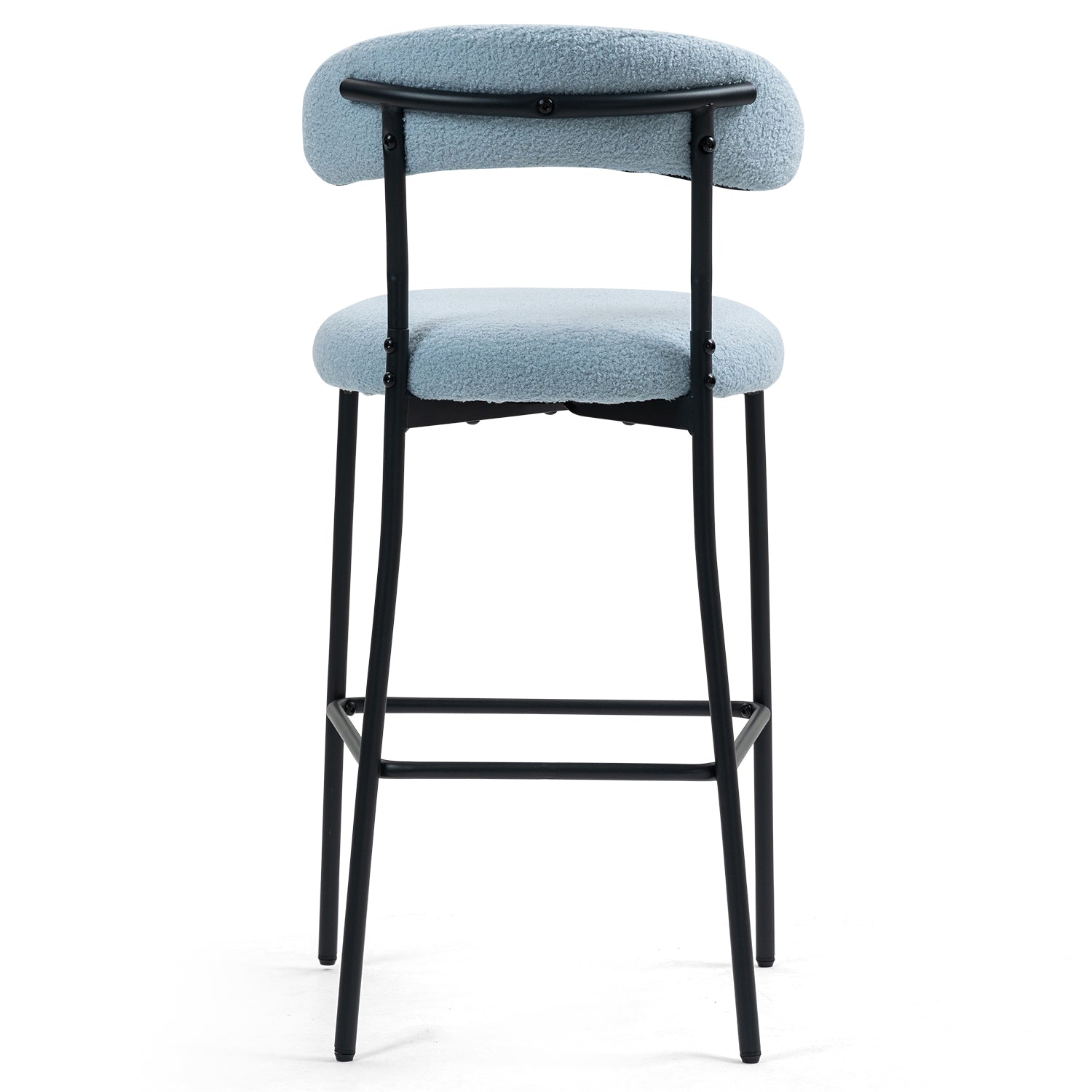 Add a touch of modern comfort to your kitchen island or counter with this stylish counter-height bar stool. Upholstered in durable Teddy fabric with a softly padded backrest and seat, it combines plush seating with a sleek black powder-coated metal base and integrated footrest for long-lasting support and contemporary appeal.