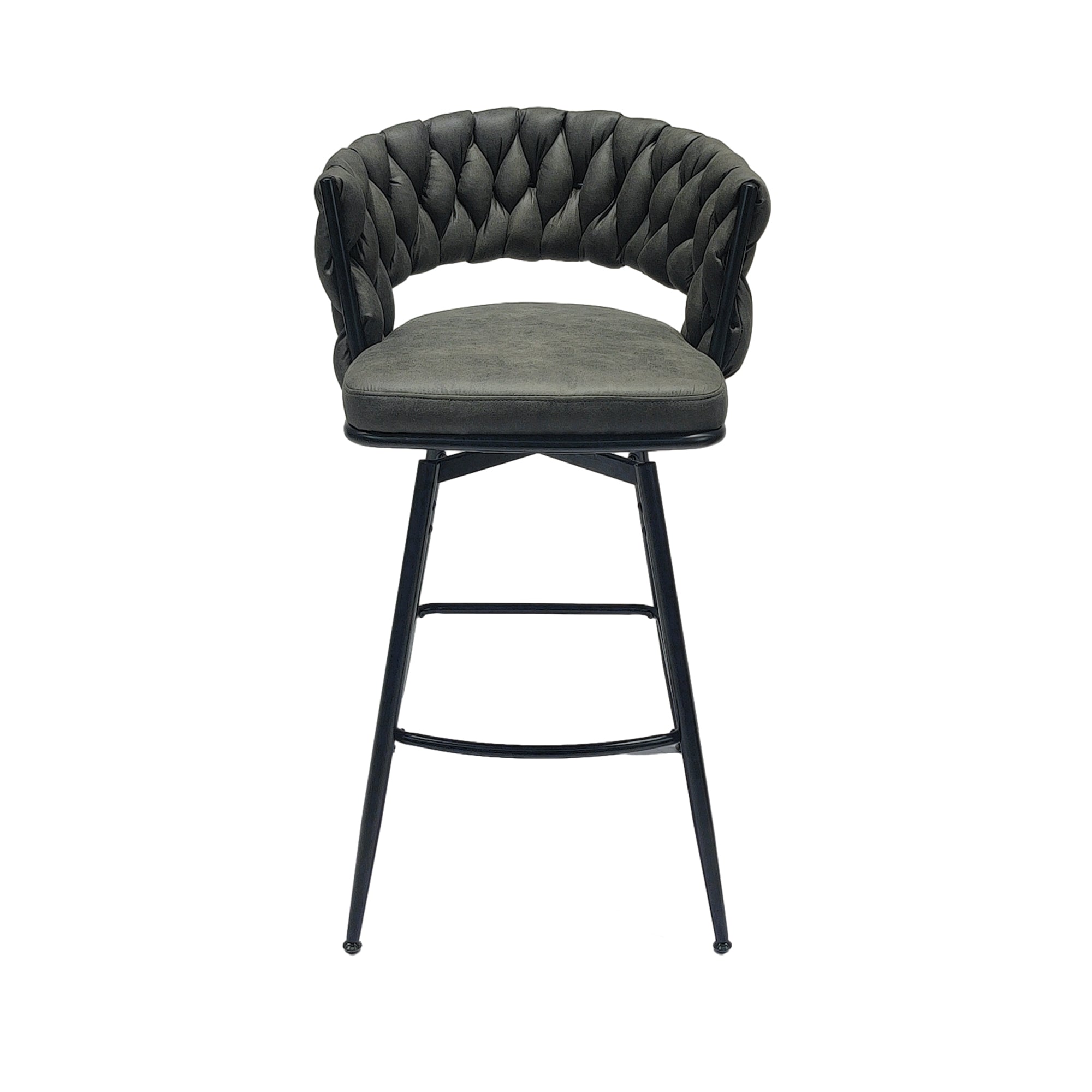 Upgrade your kitchen, bar, or dining space with this stylish pair of 28" woven technical leather bar stools. Combining modern design, comfortable upholstery, and a durable metal base, these counter-height stools offer effortless 360° swivel movement and supportive seating for everyday use or entertaining. The woven back detail adds visual interest while the padded seat and footrest ensure long sessions remain comfortable.
