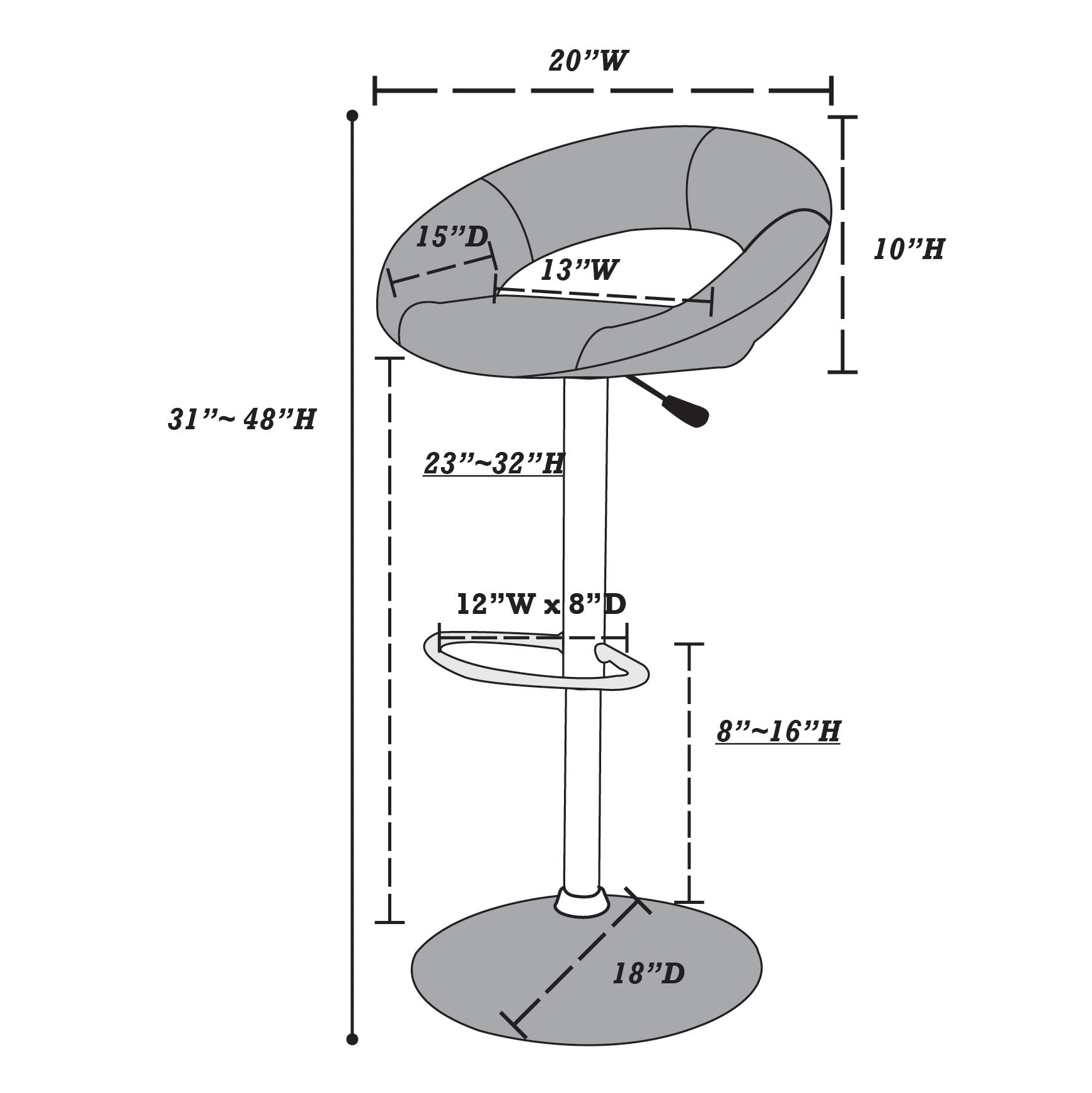 - Adjustable height: Overall height adjusts from 31" to 39"; seat height adjusts from 24" to 32" to accommodate counter- and bar-height surfaces