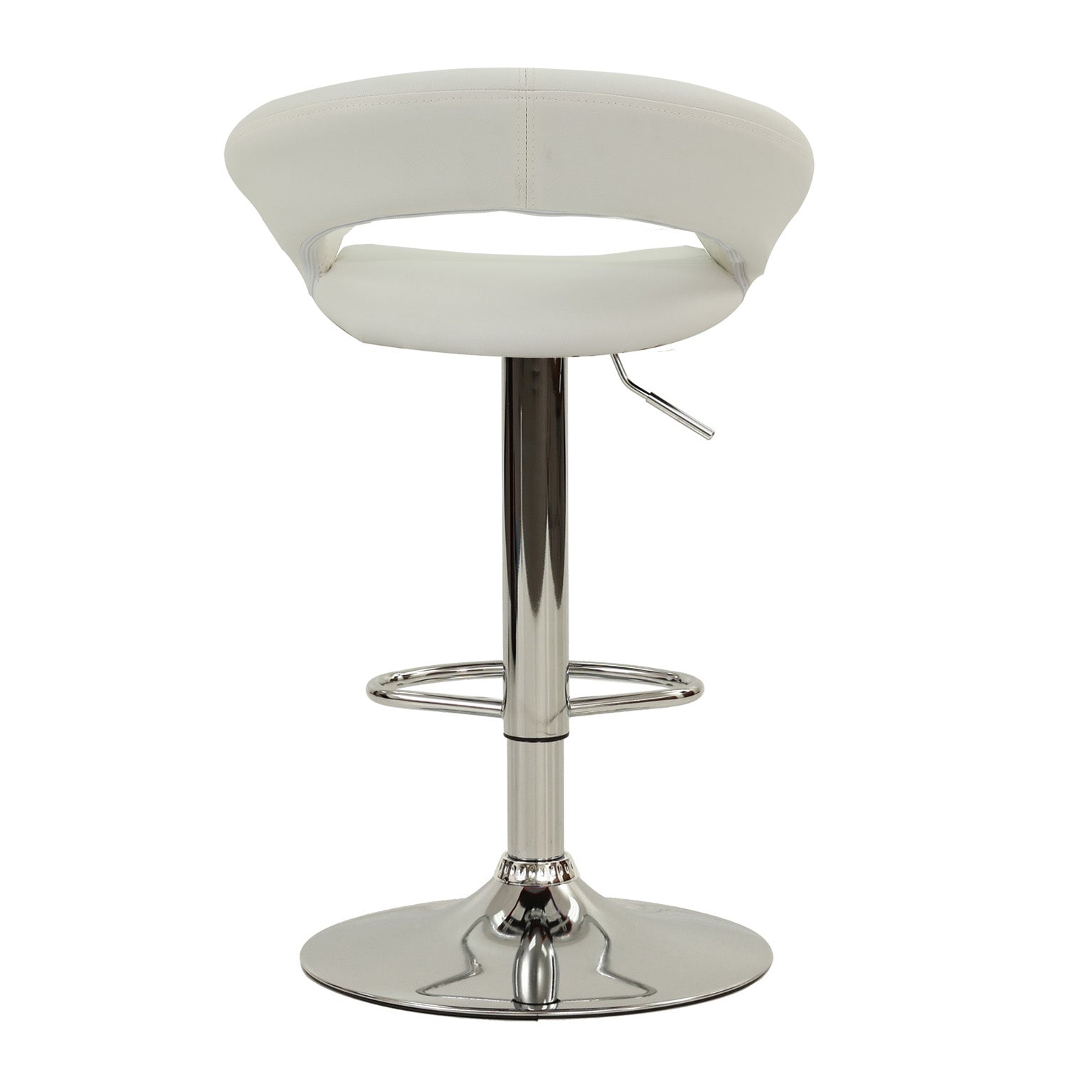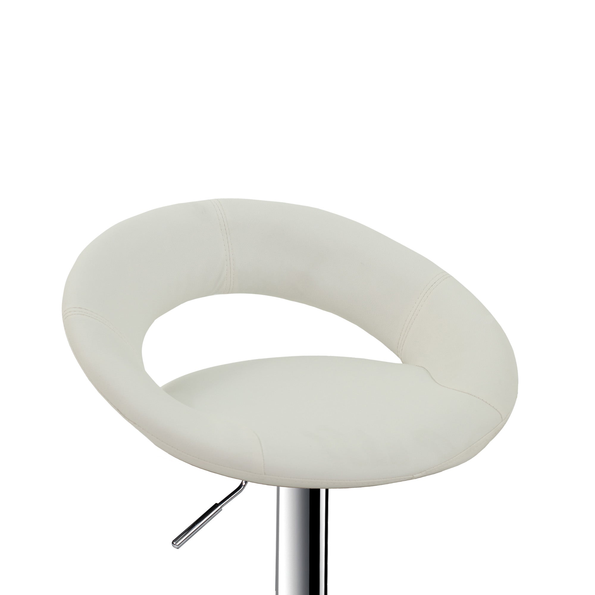 Refresh your bar or kitchen seating with this contemporary adjustable-height barstool—designed for comfort, flexibility, and clean modern style. Upholstered in white faux leather with a streamlined rounded seat and open-back detail, it offers supportive seating without visual bulk, while gas-lift height adjustment and a 360° swivel make it practical for everyday use and entertaining.