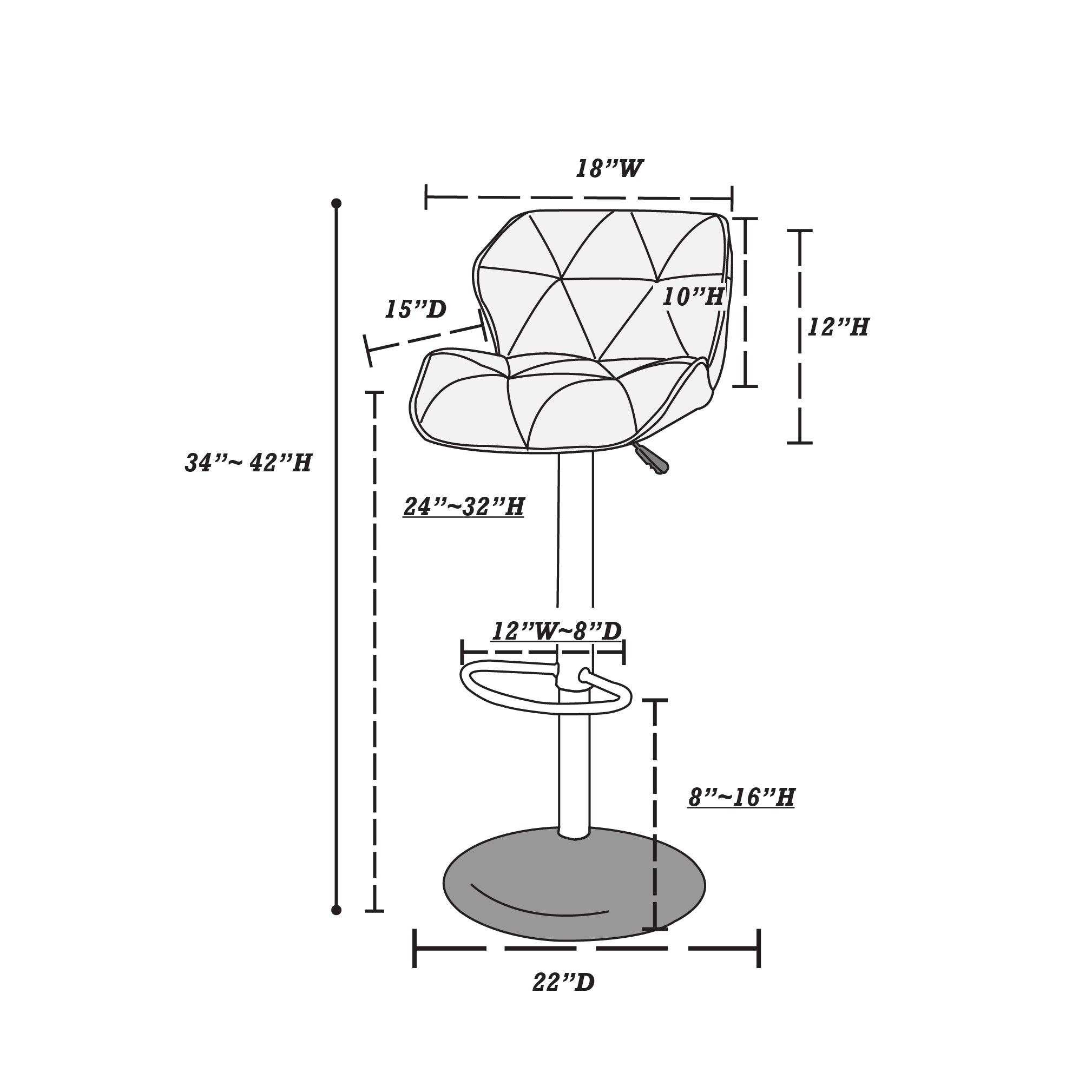 - Adjustable gas-lift seat lets you raise or lower the stool to suit counter- or bar-height surfaces