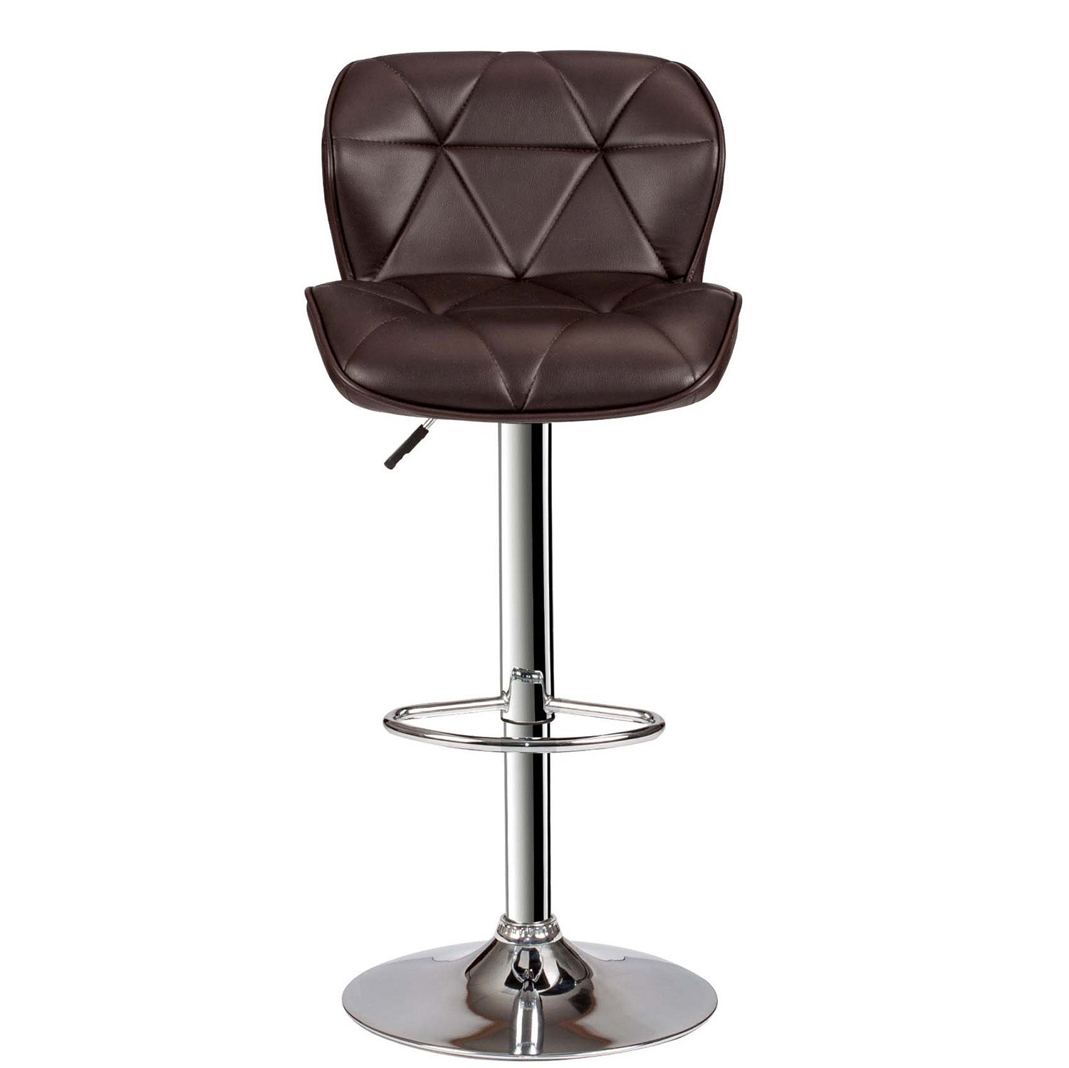 Introduce contemporary comfort to your kitchen island, home bar, or dining nook with this sleek, adjustable barstool. Upholstered in rich brown faux leather with geometric tufting, the armless silhouette and swivel pedestal base deliver a streamlined, space-saving solution that balances style and everyday practicality. Easy height adjustment and a supportive footrest make it ideal for casual meals, conversation, or working at a counter.